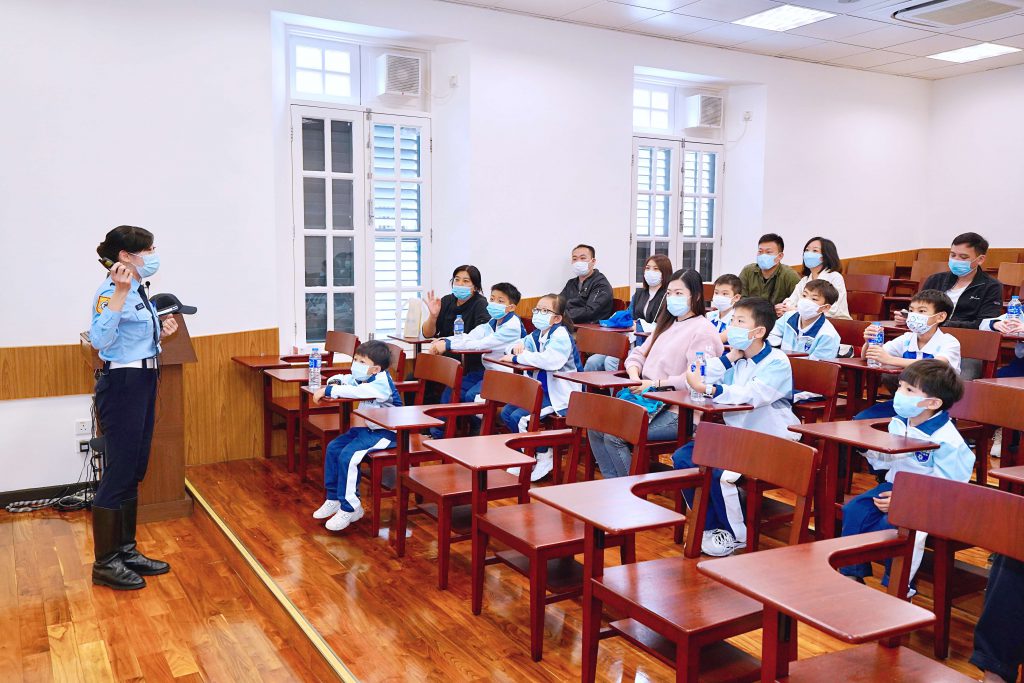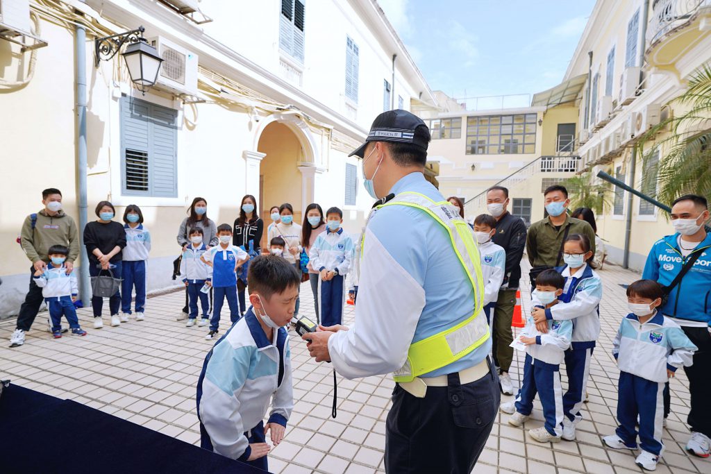 当日上午,海关小领袖成员及家长一行共30人前往治安警察局交通厅进行参观学习。活动从学习道路交通知识开始,交通警员向小领袖们介绍本澳的交通道路知识以及应遵守的交通规则,带出交通安全的理念,并以问答形式进行互动交流,令小领袖们在愉快的气氛下学习交通规则,加深对交通安全的概念。
