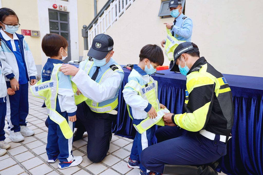 其后参观移师户外,交通警员向小领袖们展示及讲解日常交通执法的装备,包括头盔、反光衣、酒精测试仪器等,并让小领袖们穿上反光衣,在交通警员的教导下学习模拟指挥交通。