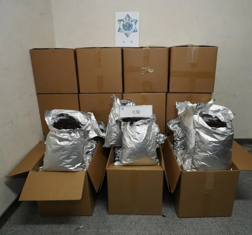Na tarde do dia 14 de Fevereito, o pessoal dos SA interceptou na zona de inspecção para os passageiros de saída do Posto Fronteiriço das Portas do Cerco, 1 praticante de comércio paralelo do sexo masculino com um lote de fios de cabelo interceptado, o praticante confessou que a mercadoria em questão era adquirida numa unidade do edifício comercial da zona norte e estava a ajudar a transportá-la para fora de Macau com recompensa. O pessoal dos SA, do CPSP e da DSAL tomou logo a acção à unidade em questão, na qual foram interceptados 1 responsável do local, 1 praticante de comércio paralelo ambos do sexo masculino e 1 outra praticante de comércio paralelo do sexo feminino, encontrando ainda no local uma grande quantidade de fios de cabelo, 135 quilos com um valor total de cerca de 15 mil patacas.