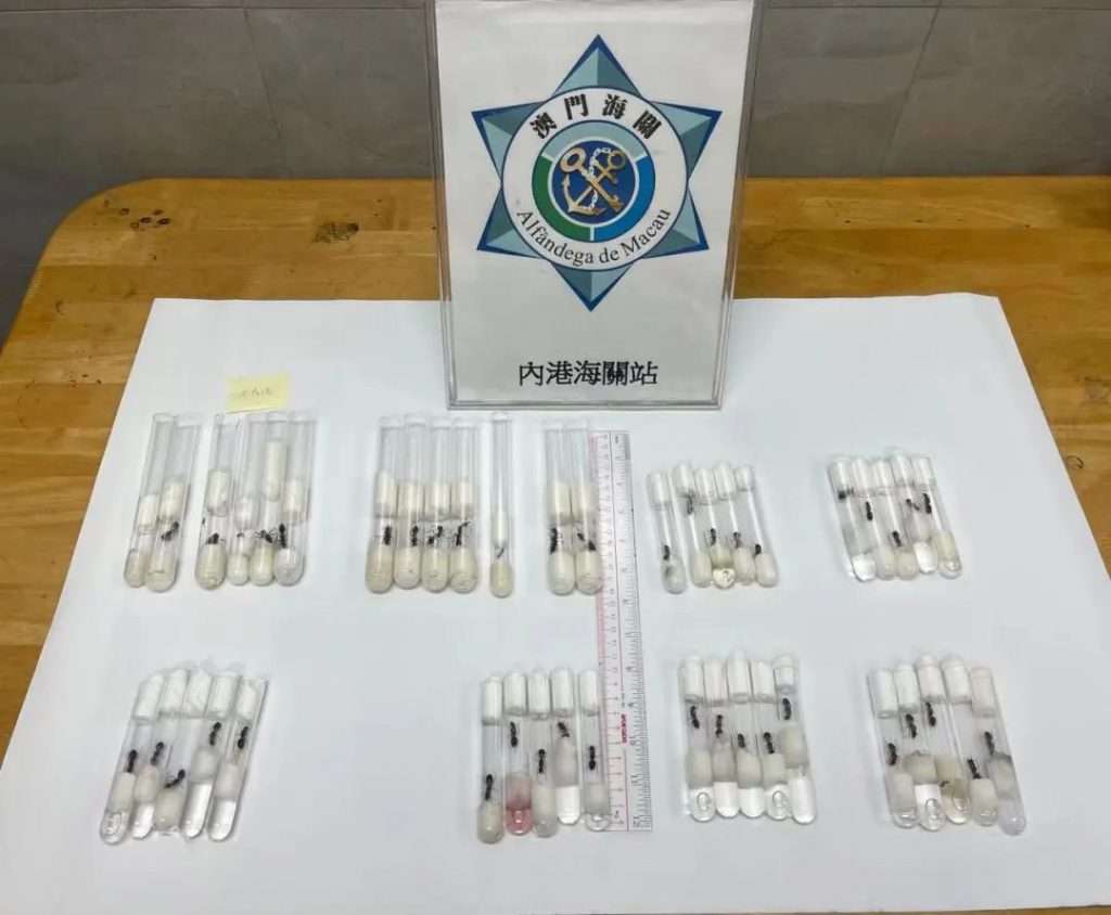 Na manhã do dia 10 deste mês, os verificadores alfandegários interceptaram uma encomenda expressa suspeita através do controlo do alarme e análise do sistema de gestão do risco. Após a inspecção, descobriram que a encomenda continha 43 tubos de ensaio onde havia 37 formigas vivas e 6 formigas inviáveis nos tubos de ensaio, mercadoria esta sujeita à licença de importação e ao regime de quarentena.