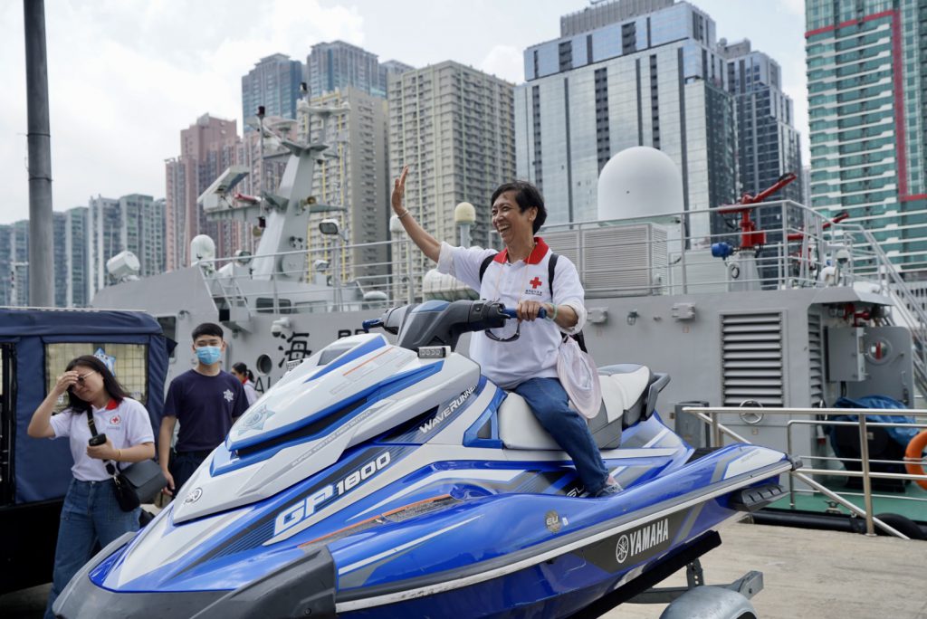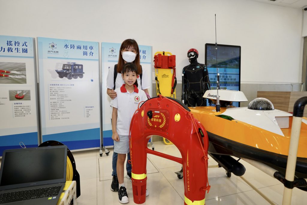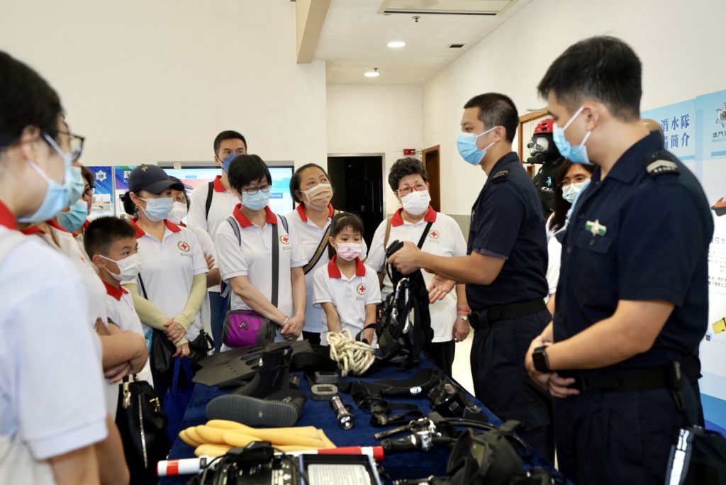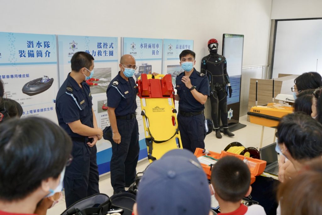 参观期间,由潜水队人员讲解在海上执勤及救援工作中常用的潜水装备、通讯设备、水陆两用车、水上电单车及橡皮艇等设备的操作和应用,同时安排参观者近距离接触和亲身体验,让参观者了解海关防灾救援工作。