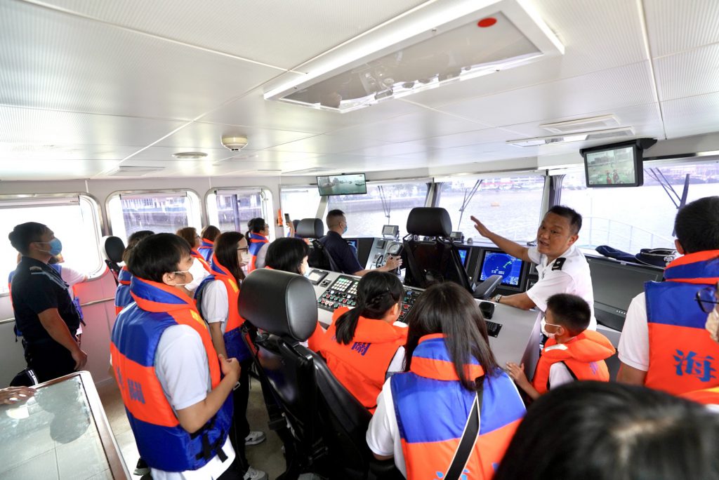 最后,在海关人员的带领下,一众参观者登上海关巡逻船出航,认识船上各类科技设备在日常工作中的应用,透过亲身体验海上巡逻工作,了解澳门管理海域的状况。过程中,参观者对海关工作内容及船上设备深感兴趣,并踊跃提问,气氛热烈。