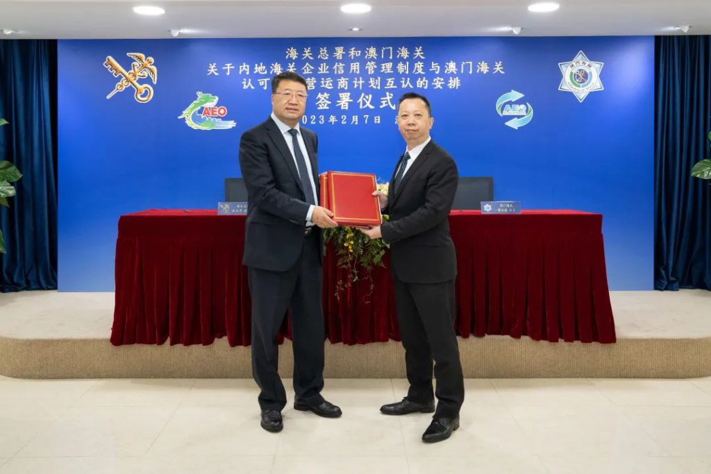 Em Fevereiro do corrente ano, a Administração Geral das Alfândegas da República Popular da China e os Serviços de Alfândega assinaram o “Acordo entre a Administração Geral das Alfândegas da República Popular da China e os Serviços de Alfândega da RAEM (SA) sobre o Reconhecimento Mútuo do Sistema de Gestão de Crédito Empresarial da Alfândega do Interior da China e do Programa Operador Económico Autorizado dos Serviços de Alfândega da RAEM” (doravante denominado por “Acordo de Reconhecimento Mútuo”) que vai ser concretizado a partir 1 de Junho.