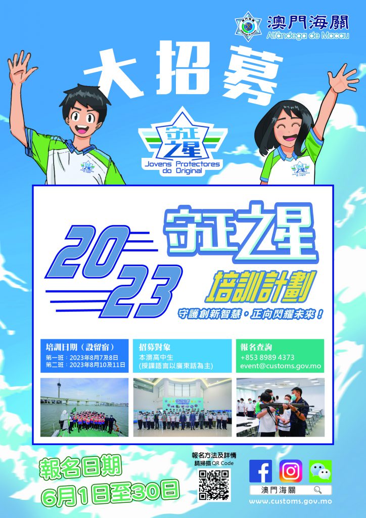 Em virtude de divulgar aos jovens conhecimentos mais amplos sobre os direitos de propriedade intelectual, e formar os mesmos para estabelecer uma concepção de vida correcta, bem como um sentido de responsabilidade perante a sociedade, os SA vão concretizar o Plano de formação para os “Jovens Protectores do Original”, os destinatários do respectivo plano de formação são os estudantes do ensino secundário complementar de Macau e o período de inscrição é de 1 de Junho a 30 de Julho Será bem vinda a participação proactiva de todos neste Plano de formação.