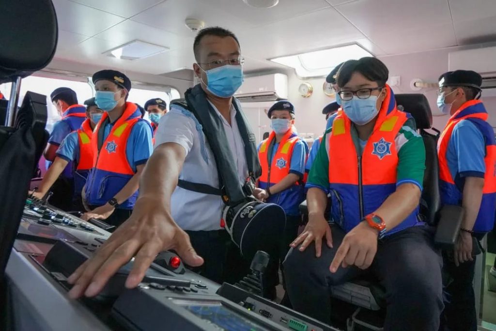 –Embarque na lancha de fiscalização e experimentação do trabalho da Flotilha de Meios Navais na área marítima sob jurisdição de Macau;