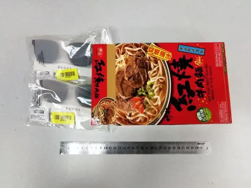 在警察总局统筹下,澳门海关持续开展【雷霆2023】行动,加强口岸执法。于6月26日,关员在关闸口岸出境旅客检查区发现一名通关女子混迹于离境人群中,形迹可疑,随即对其进行截查,经关员检查后,除发现4支没有申报之美妆产品外,亦揭发该名女子利用食品包装盒作掩饰收藏11副名贵太阳眼镜,试图蒙混过关。