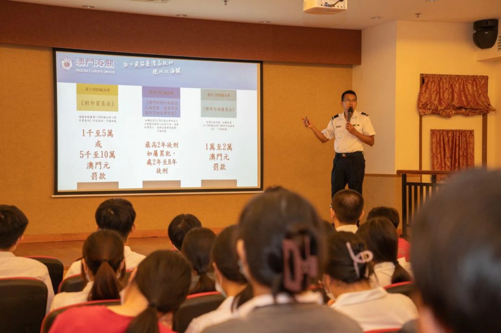 為提升本澳學生防罪守法意識,海關持續走進校園開展普法宣教活動。本月3日,海關到嶺南中學舉辦青少年普法專題講座,培養學生建立正確價值觀,約170名師生參與活動。
