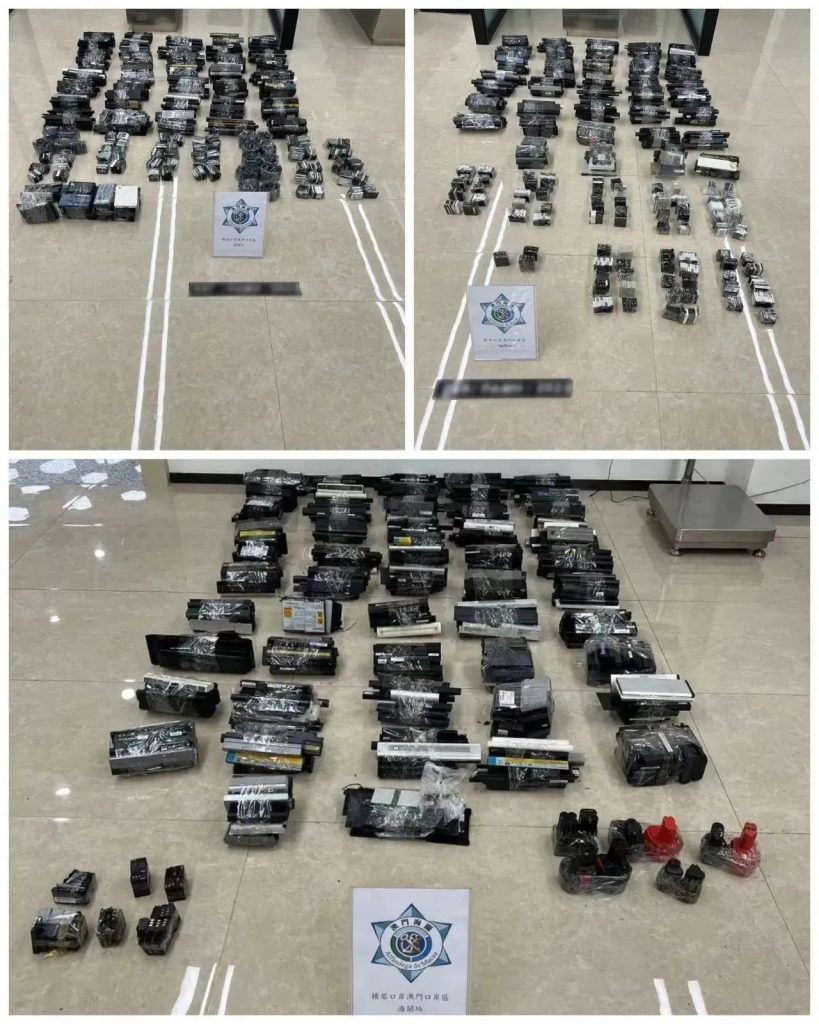 Na tarde do dia 29, o pessoal alfandegário responsável pela fiscalização na área da Estrada de Tiro da Taipa encontrou 3 veículos transfronteiriços estacionados num descampado, e 3 motoristas separavam as mercadorias e distribuíram-nas pelos respectivos veículos. As três pessoas em questão saíram do local em direcção ao Posto Fronteiriço Hengqin, os verificadores alfandegários no corredor de saída do Posto alfandegário do Posto Fronteiriço Hengqin imediatamente mandaram parar os veículos e apreenderam um total de 2.890 baterias usadas. Depois, mais duas pessoas dirigiram veículos transfronteiriços para o local para realizar actividades de reembalagem de mercadorias, sendo um momento ideal, os SA foram imediatamente ao local para os interceptar e apreenderam um total de 1.120 peças de baterias usadas no local. O valor total das baterias usadas apreendidas nos dois casos ultrapassa as 190 mil patacas. As mercadorias em causa não apresentavam documentos de declaração de importação e certificados de origem. Após interrogatórios, os envolvidos admitiram estar a contrabandear as mercadorias em causa para o Interior da China.
