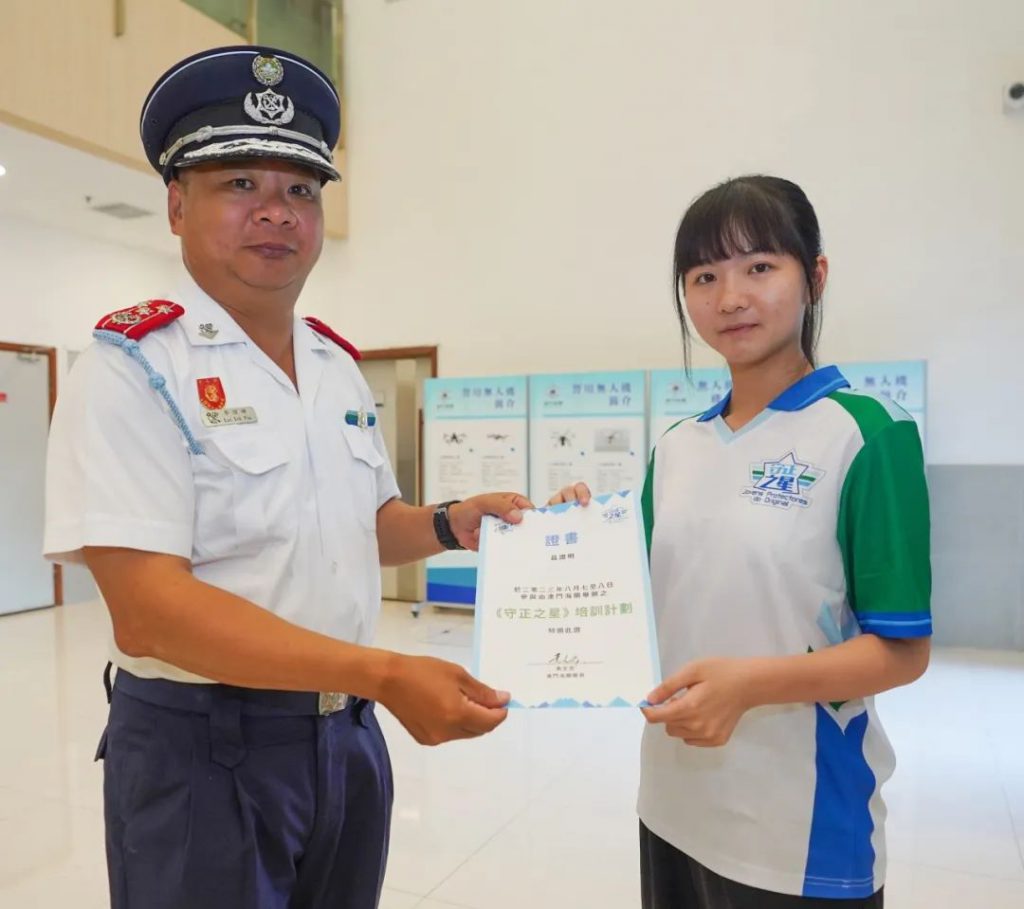 在学校看见海关“守正之星”培训计划宣传海报,希望认识海关工作及职责,所以报名参加今次活动。在知识产权课堂中,透过海关人员讲解本澳保护知识产权的法律制度及案例分析,了解生活上可能会存在假冒产品,亦明白保护知识产权的重要性。另外,在参观海关船队时,透过与潜水队人员交流及亲身体验,认识潜水时专业装备的重要性,以及对体能有非常严格的要求,对潜水队的工作有了更深入的认知。