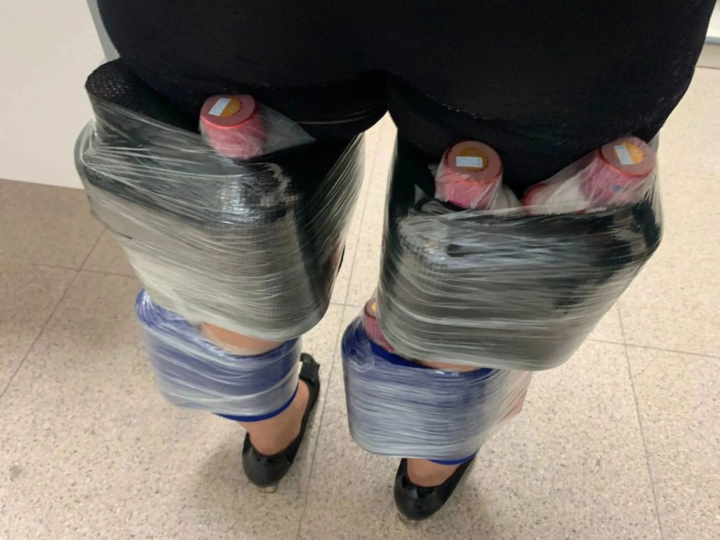 于9月8日晚上,关闸口岸海关关员透过“太赫兹人体成像安检系统”,以非入侵的检查方式,揭发一名出境女子将6支中国白酒捆绑于双脚,试图偷运出境。