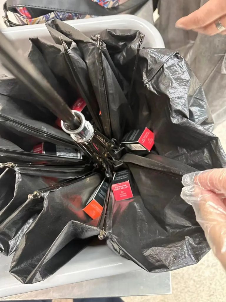 于9月11日傍晚,海关关员在关闸口岸出境旅客检查区发现一名通关男子形迹可疑,并一直试图混迹于离境人群中,遂对其进行截查,经检查发现其将32件美妆产品分别收藏于雨伞及单肩包内。