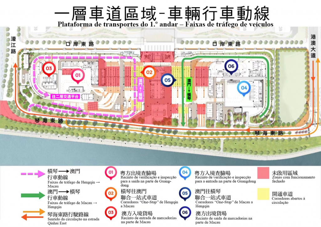 新通关车道采用“合作查验,一次放行” (联合一站式)创新查验模式,实现出入境车辆“一次排队,一次放行”。原通关车道暂停使用,原可随车通关人员(例如70岁或以上长者、10岁或以下儿童、孕妇及残障人士)准则和往来粤澳口岸原货车通关安排维持不变。有关车辆行车动线调整详见附图。