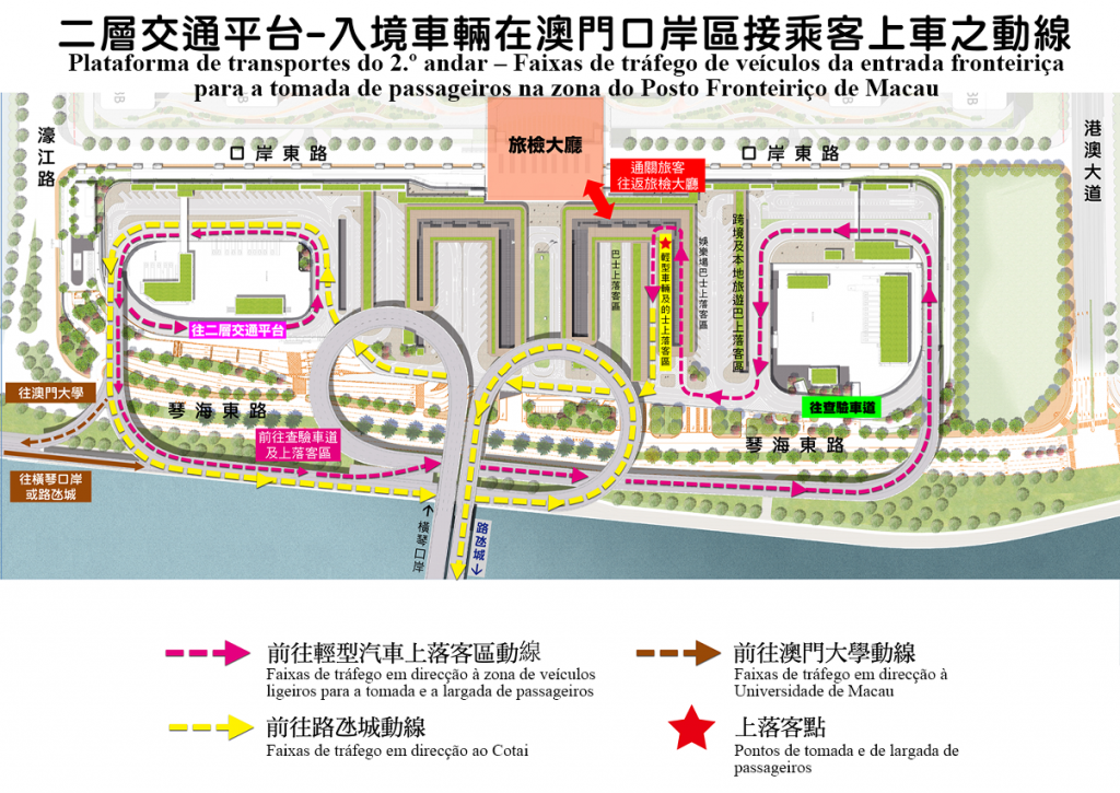 鉴于横琴口岸一层随车人员验放厅尚未完成建设,往来琴澳非准予随车通关乘客仍需经旅检大厅出入境;不具横琴口岸通关资格的汽车自开通试运行日起可到澳门口岸区接送乘客。