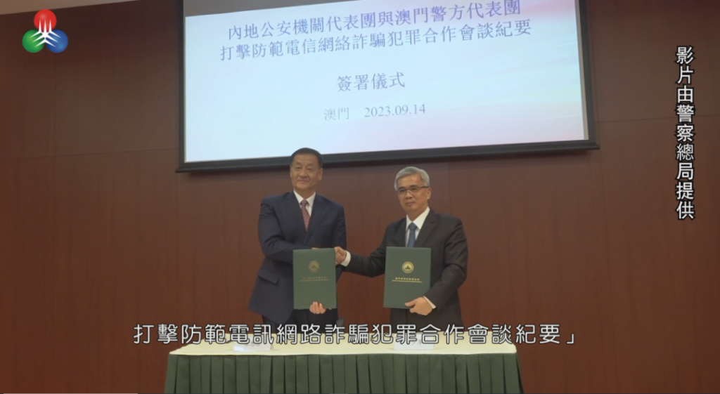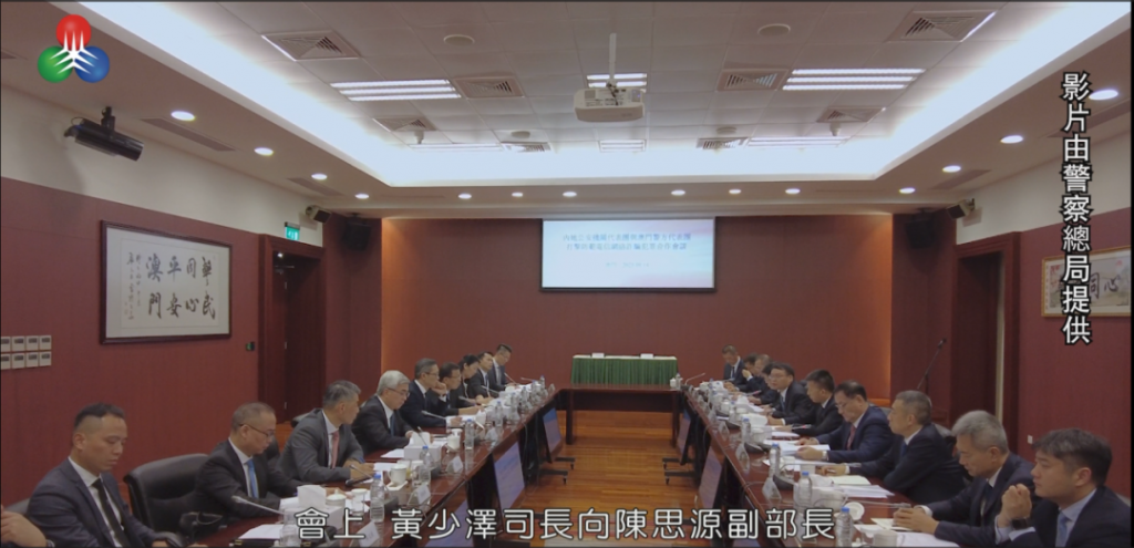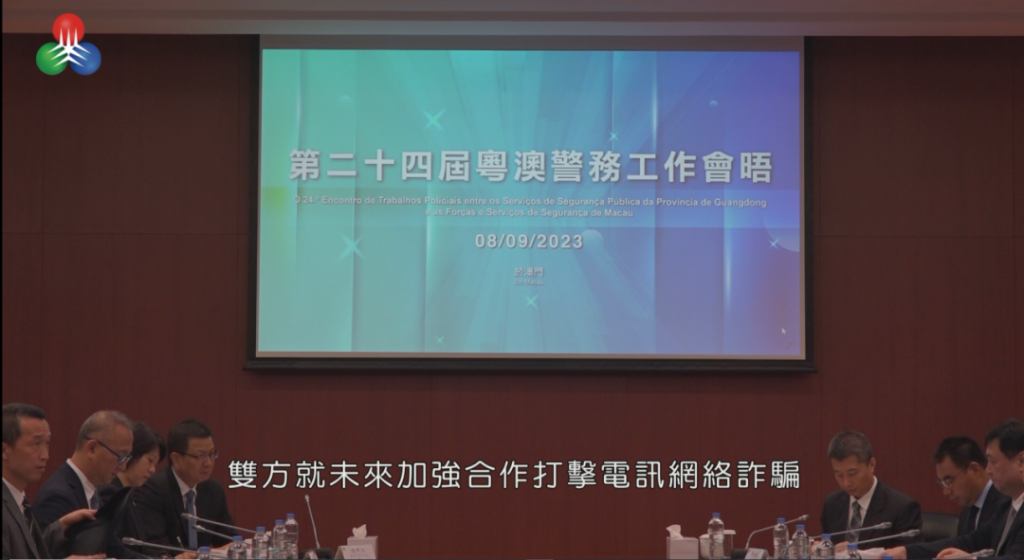 保安司司长黄少泽率保安范畴相关部门代表与到访澳门的公安部副部长陈思源一行举行工作会谈,双方围绕加强合作打击电讯网络诈骗及打击「换钱党」等议题深入交流,会后 双方签署了「内地公安机关代表团与澳门警方代表团打击防范电讯网络诈骗犯罪合作会谈纪要」。