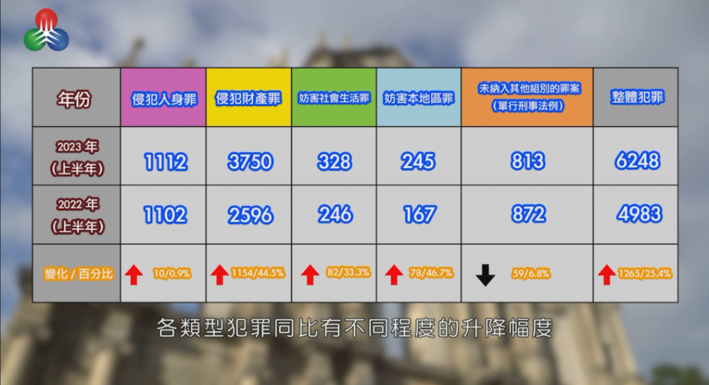 保安司在9月初发布了2023年上半年罪案统计及执法工作数据,旅客增加及经济复苏是引起罪案变化的主要因素,保安当局会加强警力布防和巡查工作,根据实际情况调整执法部署以确保市民及旅客的人身财产安全。