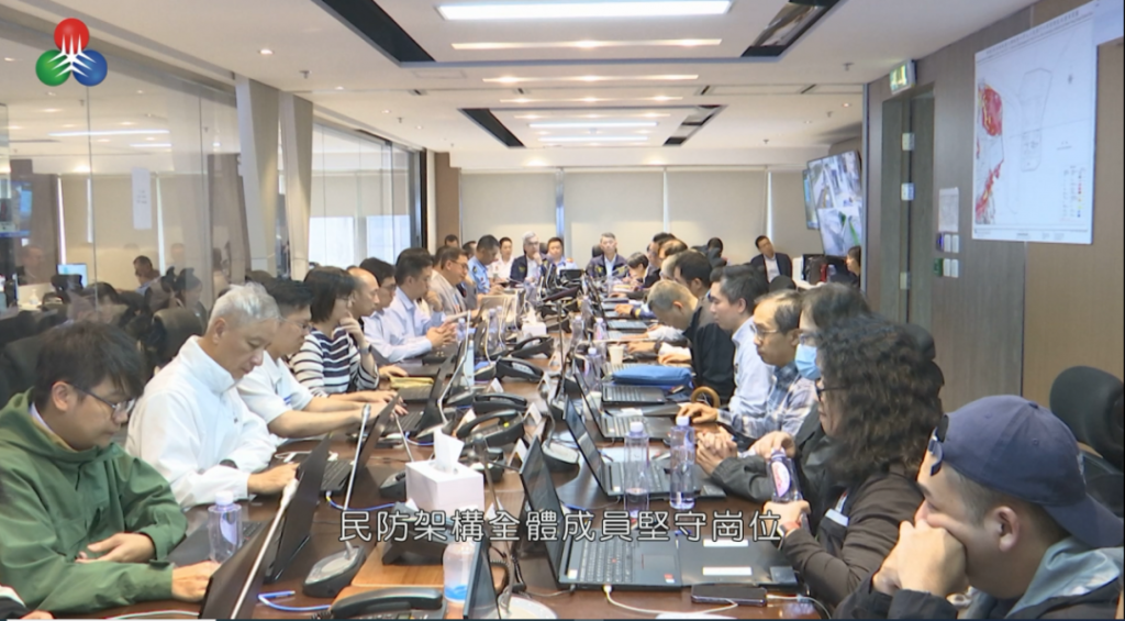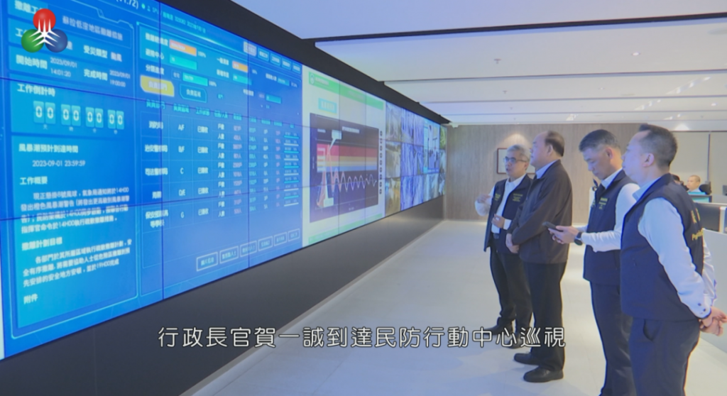 超强台风「苏拉」正面吹袭珠三角地区,澳门特别行政区在9月1日下午2时进入实时预防状态,民防架构全体成员进驻民防行动中心部署各项应对工作。八号风球期间,行政长官贺一诚到达民防行动中心巡视,听取民防架构成员应对台风的工作汇报;行政长官指示民防架构全体成员同心协力,做好防风防水浸及疏散撤离工作。