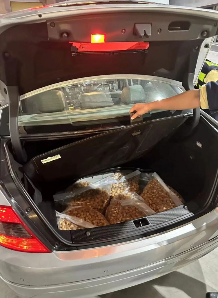 No 2º caso ocorrido ao meio dia do dia 21, os verificadores alfandegários em serviço encontraram, no banco traseiro e no porta-bagagens do veículo, 460 kgs de estômago de bovino.