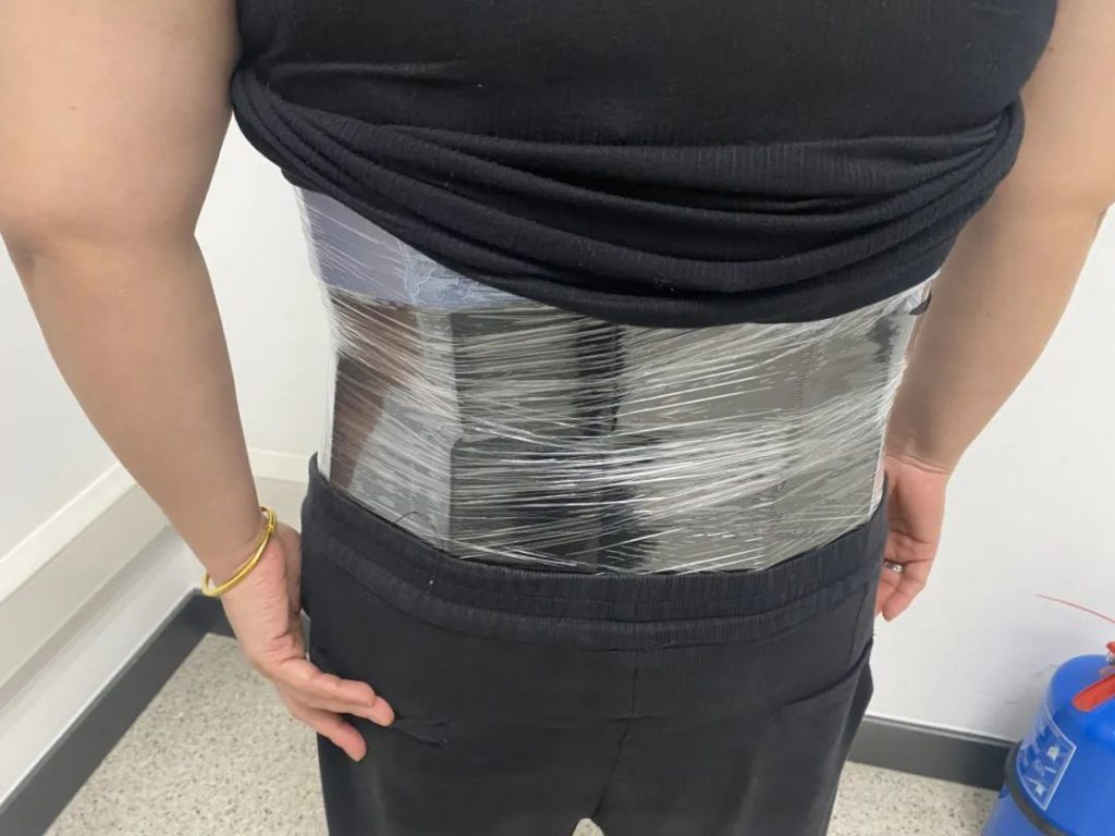 Na manhã do dia 22, o verificador alfandegário avistou na zona de inspecção para os passageiros de saída do Posto Fronteiriço Qingmao 1 indivíduo do sexo masculino de passagem fronteiriça que andava com uns movimentos rígidos e não coordenados evitando o contacto visual com o pessoal alfandegário em serviço, suspeitando-se de estar a praticar actividades ilícitas. Os verificadores alfandegários em serviço indicaram-o para ser submetido à inspecção pelo pórtico detector de metais que, à sua passagem, emitiu um alarme. Após uma inspecção mais profunda, foi verificado que o indivíduo em questão tinha usado filme plástico para amarrar e esconder respectivamente, na cintura e na parte interna das coxas, um total de 42 telemóveis usados, tentando contrabandeá-los para fora de Macau.