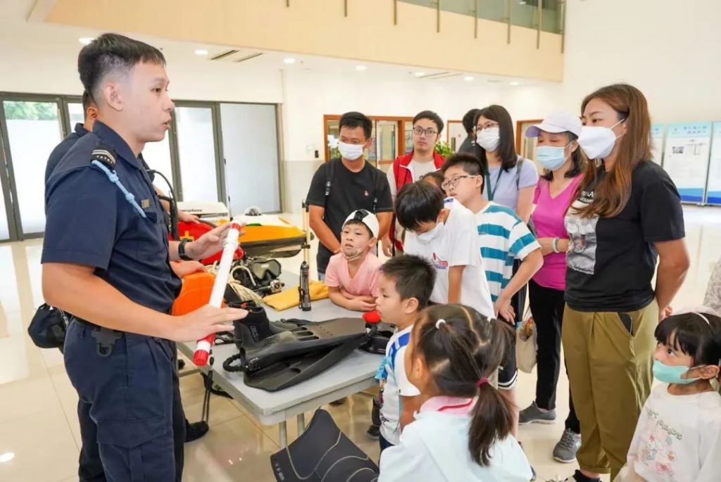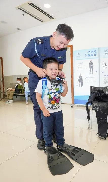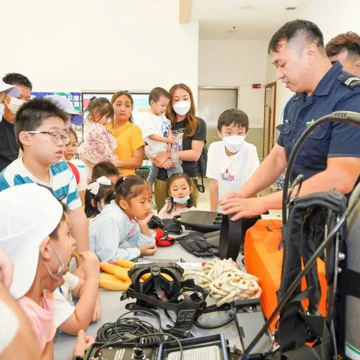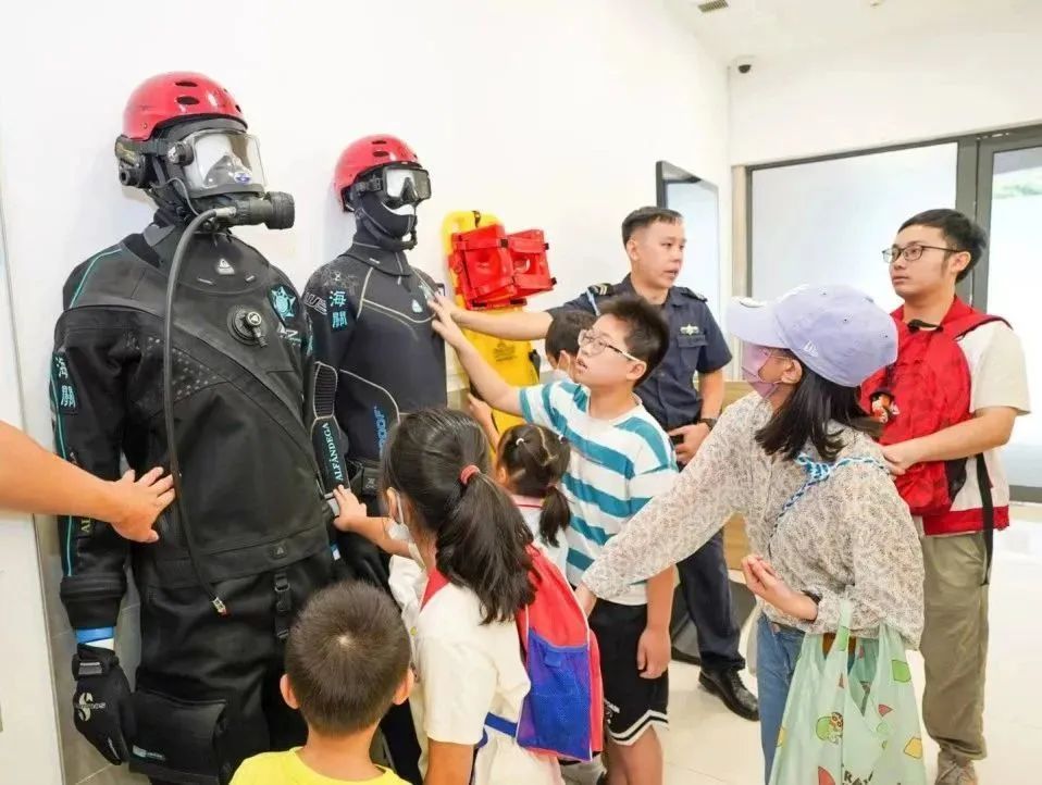参观期间,由潜水队人员讲解在海上执勤及救援工作中常用的潜水装备、通讯设备、水陆两用车、水上电单车及橡皮艇等设备的操作和应用,同时安排参观者近距离接触和亲身体验,让参观者了解海关防灾救援工作。