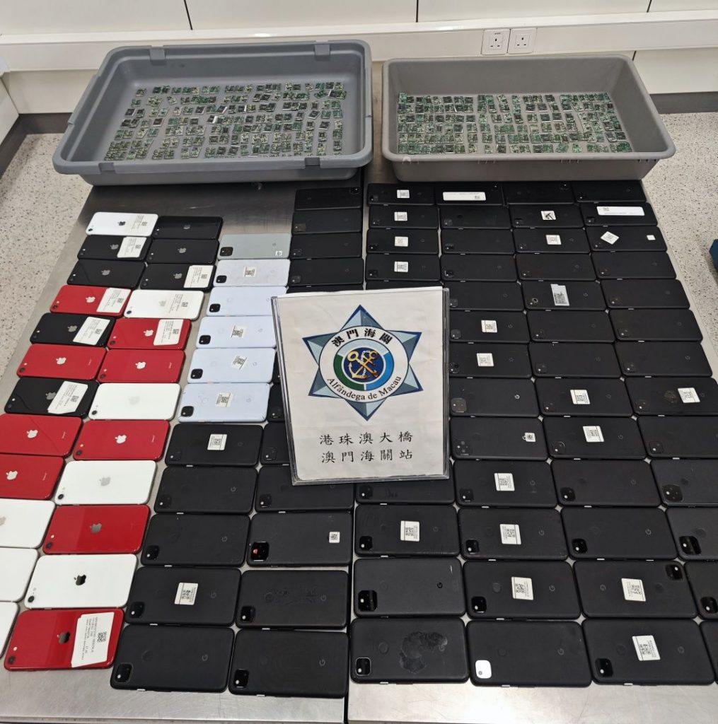 Os SA continuam a reforçar o trabalho de inspecção aduaneira em vários postos fronteiriços e reprimir severamente as actividades de tráfico ilegal através do mecanismo de comunicação entre a Alfândega de Hong Kong e os Serviços de Alfândega. Em 31 de Outubro, através da troca de informações ponto a ponto em tempo real da Ponte Hong Kong-Zhuhai-Macau entre o Departamento de Alfândega e Impostos de Hong Kong e os SA, os SA interceptaram um caso de contrabando de telemóveis e outros produtos electrónicos usados para Macau no Posto Alfandegário da Ponte Hong Kong-Zhuhai-Macau.