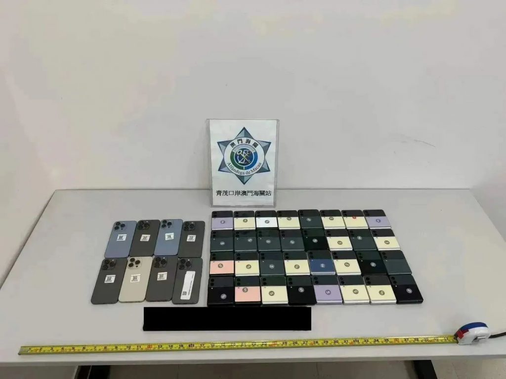 Na manhã do dia 4 de Novembro, o verificador alfandegário avistou na zona de inspecção para os passageiros de saída do Posto Fronteiriço Qingmao 1 indivíduo do sexo masculino de passagem fronteiriça que andava com uns movimentos rígidos e não coordenados evitando o contacto visual com o pessoal alfandegário em serviço, suspeitando-se de estar a praticar actividades ilícitas. Os verificadores alfandegários em serviço indicaram-o para ser submetido à inspecção pelo pórtico detector de metais que, à sua passagem, emitiu um alarme. Após uma inspecção mais profunda, foi verificado que o indivíduo em questão tinha usado filme plástico para amarrar e esconder respectivamente, na cintura e nas coxas, um total de 40 telemóveis usados, tentando contrabandeá-los para fora de Macau.