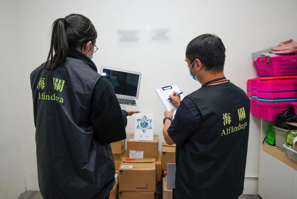 Os SA atenderam recentemente a uma denúnica, em que se suspeitava que uma unidade de um centro comercial localizado na zona norte estava a praticar a actividade de ponto de distribuição de mercadorias de comércio paralelo, enviaram logo pessoal para fazer a vigilância. Na tarde de dia 14, o verificador alfandegário avistou a saída suspeita de um homem praticante de comércio paralelo da unidade em questão na direcção do Posto Fronteiriço das Portas do Cerco, foi interceptado pelo pessoal alfandegário em serviço com um lote de produtos cosméticos e computadores portáteis usados na zona de inspecção de bagagem para os passageiros de saída. Visto que era um momento ideal, o pessoal dos SA tomou logo a acção em relação à unidade alvo, foram detidos uma pessoa responsável do local, uma empregada e apreendidas 400 unidades de produtos cosméticos e 3 unidades de computadores portáteis usados com um valor total de cerca de 190 mil patacas e sem qualquer documentação de declaração de importação e exportação válida. Ao mesmo tempo, o pessoal dos SA encontrou ainda na unidade em questão uma tabela de registo de distribuição de mercadorias para o uso do registo da actividade de praticante de comércio paralelo na qual constavam os dados da actividade, o nome do praticante de comércio pararelo, bem como o tipo e a quantidade de mercadoria transportada, e que eram correspondentes aos dados do praticante de comércio paralelo interceptado na zona de inspecção de bagagem para os passageiros de saída do Posto Fronteiriço das Portas do Cerco há pouco mencionado.