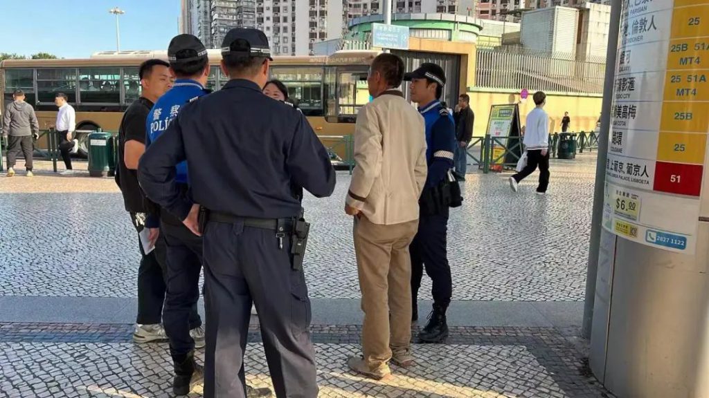 海關與治安警察局於關閘廣場風雨廊截獲該名懷疑偷渡入境男子
