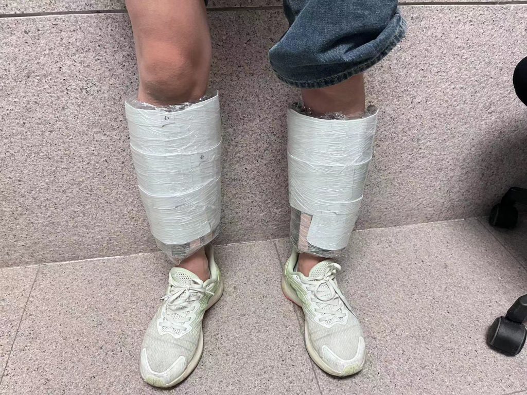 同日下午,海关关员在关闸口岸出境旅客检查区发现一名形迹可疑的女子,遂要求其进入检查区接受检查。关员利用“太赫兹人体成像安检系统”进行检查后,发现该女子利用透明胶带将合共48件美妆产品藏于小腿两侧,试图偷运出境。