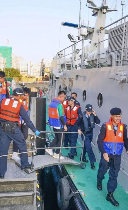Finalmente, sob a liderança do pessoal alfandegário, os jovens embarcaram na lancha de fiscalização, e durante a viagem, o pessoal alfandegário apresentou-lhes os diferentes equipamentos tecnológicos instalados na lancha, bem como partilhou com os jovens as suas experiências no trabalho em embarcação para que os jovens pudessem experienciar pessoalmente o trabalho de patrulha marítima e compreender a situação da administração na área marítima de jurisdição de Macau.