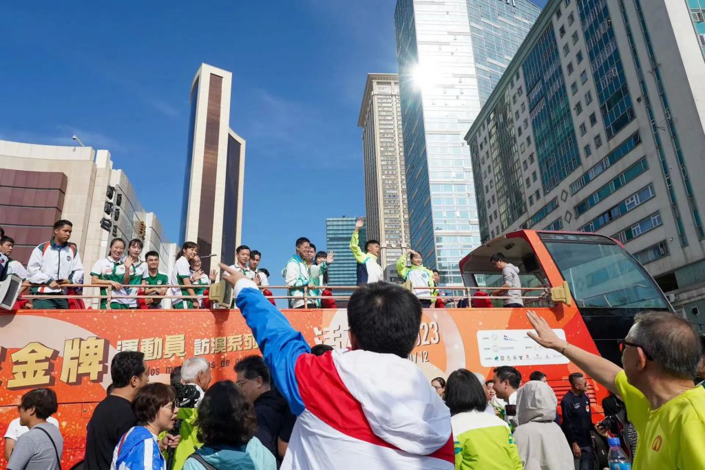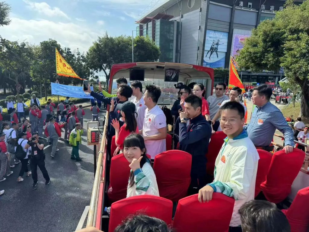 當中,海關守正之星成員與多位國家級金牌運動員一同登上雙層開篷巴士參與公益金百萬行活動,為沿途參加者揮手打氣。