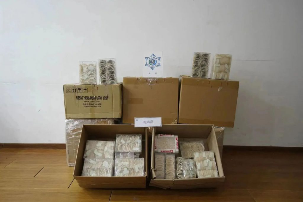 Os SA receberam recentemente uma denúnica, em que se suspeitava que uma unidade de um centro comercial localizado na zona norte estava a praticar a actividade de ponto de distribuição de mercadorias de comércio paralelo, enviaram logo pessoal para fazer a vigilância. Na tarde de dia 5, o verificador alfandegário avistou a saída suspeita de dois homens praticantes de comércio paralelo da unidade em questão na direcção do Posto Fronteiriço das Portas do Cerco, foram interceptados pelo pessoal alfandegário em serviço com um lote de ninho de andorinha seco na zona de inspecção de bagagem para os passageiros de saída. Após interrogatório, os dois confessaram que tinham trazido as mercadorias da unidade supramencionada para as transportar para o Interior da China com a respectiva recompensa pecuniária. Visto que era o momento ideal para a acção, o pessoal alfandegário tomou logo a acção à unidade alvo, foram interceptados 1 responsável no local e 26 quilos de ninho de andorinha seco com um valor estimado de 150 mil patacas, sem qualquer documentção de declaração para a exportação.