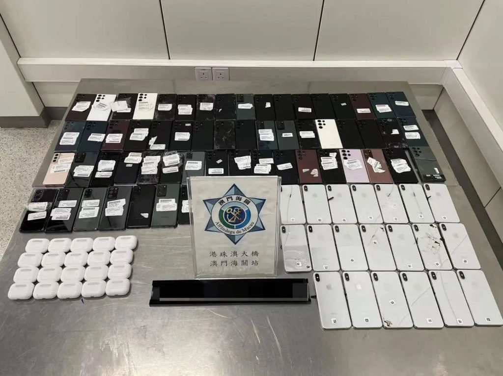 于12月28日上午,港珠澳大桥澳门口岸关员对一名由香港前往本澳的男性旅客进行截查,经关员使用毫米波人体安全检查系统及X射线检查系统作详细检查后,揭发该名男子将80部旧手提电话及20件旧蓝芽耳机绑藏于腰间及藏于随身行李中,试图偷运入境。