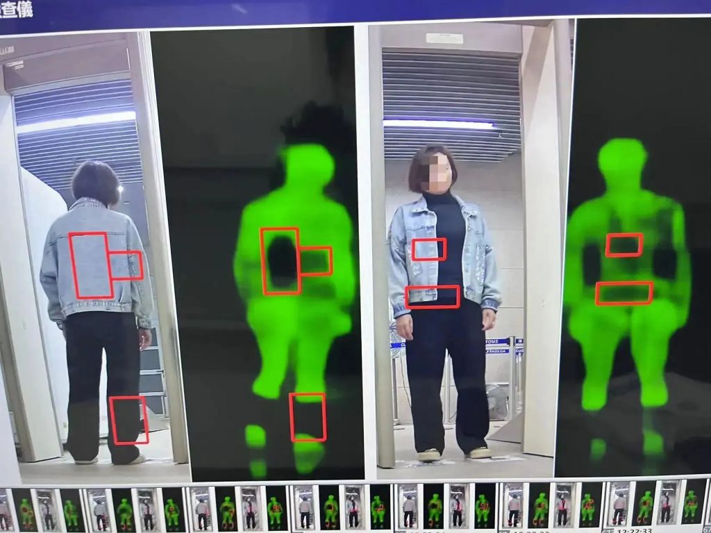 于12月30日中午,海关关员在关闸口岸出境旅客检查区发现一名通关女子步履异常,混迹于离境人群中,怀疑其藏有可疑物品。经使用太赫兹人体成像安检系统详细检查后,发现该名女子将99件美妆产品绑藏于腰间及小腿,试图偷运出境。