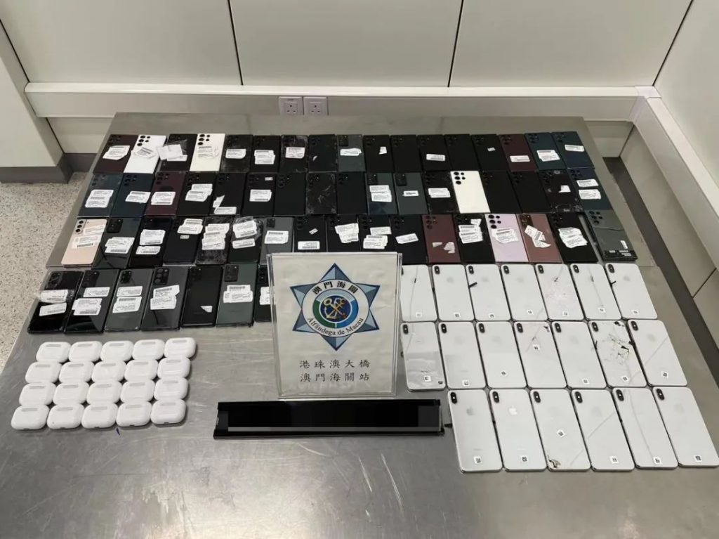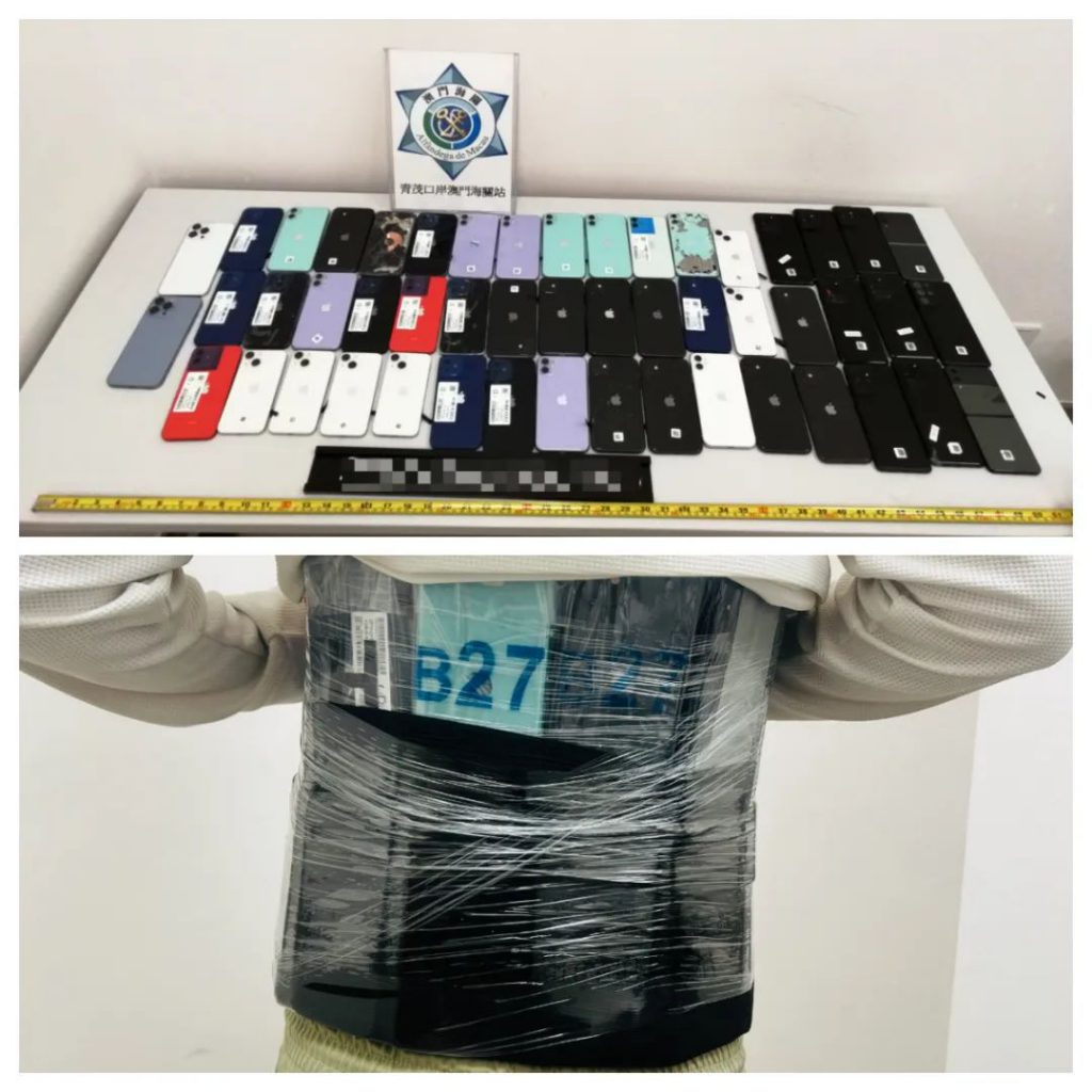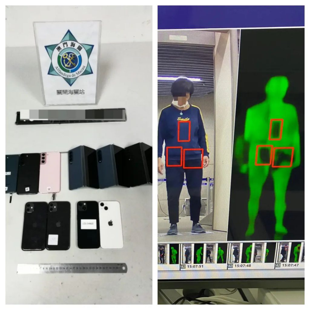 Na manhã do dia 28 de Dezembro, os verificadores alfandegários em serviço no Posto Fronteiriço de Macau da Ponte de Hong Kong-Zhuhai-Macau procederam a inspecção a um passageiro do sexo masculino que vinha de Hong Kong para Macau, após a inspecção detalhada pelo pessoal dos SA através do sistema de inspecção de segurança no corpo humano de ondas milimétricas e o sistema de inspecção de raio X, foi descoberto que o mesmo tinha escondido 80 telemóveis usados e 20 auriculares sem fios de bluetooth usados na cintura e na sua bagagem de mão, tentando contrabandeá-los para Macau.