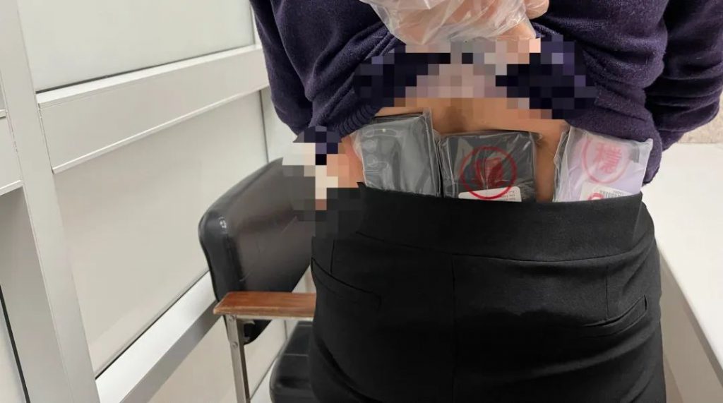 Ao meio-dia do dia 30 de Dezembro, os verificadores alfandegários avistaram na zona de inspecção para os passageiros de saída do Posto Fronteiriço das Portas do Cerco, um indivíduo do sexo feminino que caminhava com movimentos anormais e que tentava misturar-se com a multidão para a passagem fronteiriça, a atitude levou à suspeita de que a mulher em questão tinha escondido os artigos ilegais. Após uma inspecção detalhada com a utilização do Sistema de inspecção da segurança por scanner corporal Terahertz, foi descoberto que a mesma tinha amarrado e escondido 99 unidades de produtos cosméticos na cintura e nas pernas, tentando contrabandeá-las para Macau.