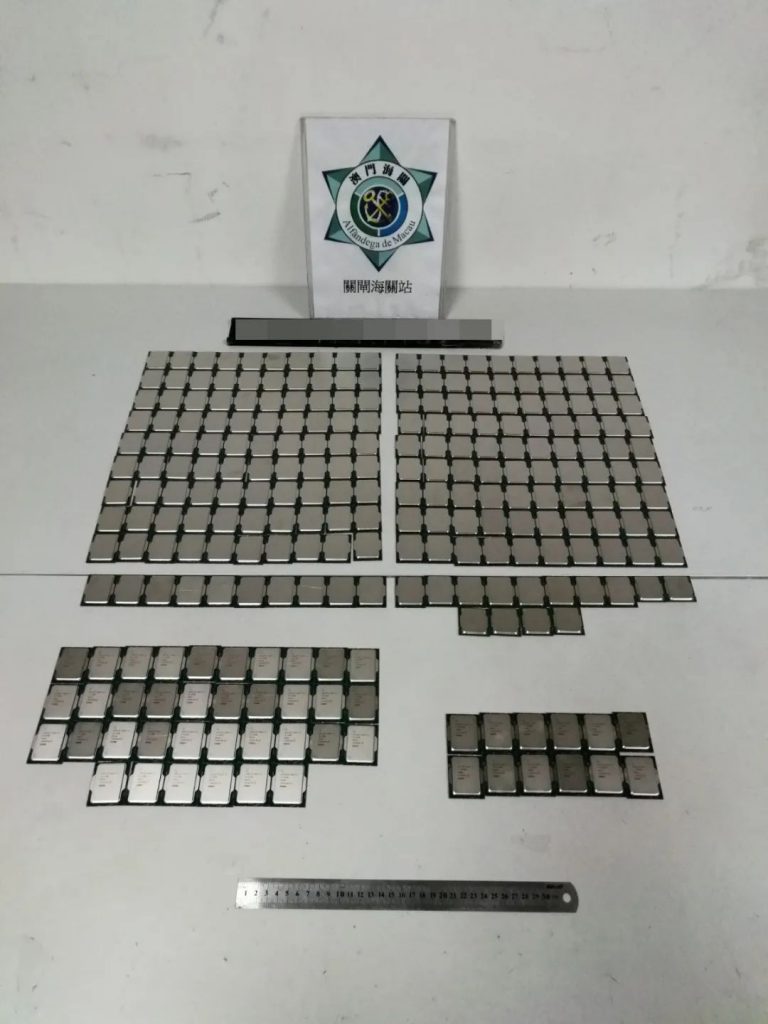 Ao meio-dia, na tarde e na noite do dia 30 de Dezembro, com o aproveitamento de pórticos detectores de metais para a execução das leis, os verificadores alfandegários em serviços interceptaram na zona de inspecção para os passageiros de saída do Posto Fronteiriço Qingmao 3 casos de transporte ilegal para fora de Macau de telemóveis usados for forma oculta no corpo, os quais envolveram 3 indivíduos que tinham amarrado nos corpos os telemóveis usados, foram interceptados 119 telemóveis usados que não possuiam nenhum documento de declaração válido.