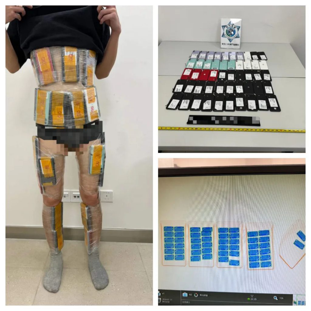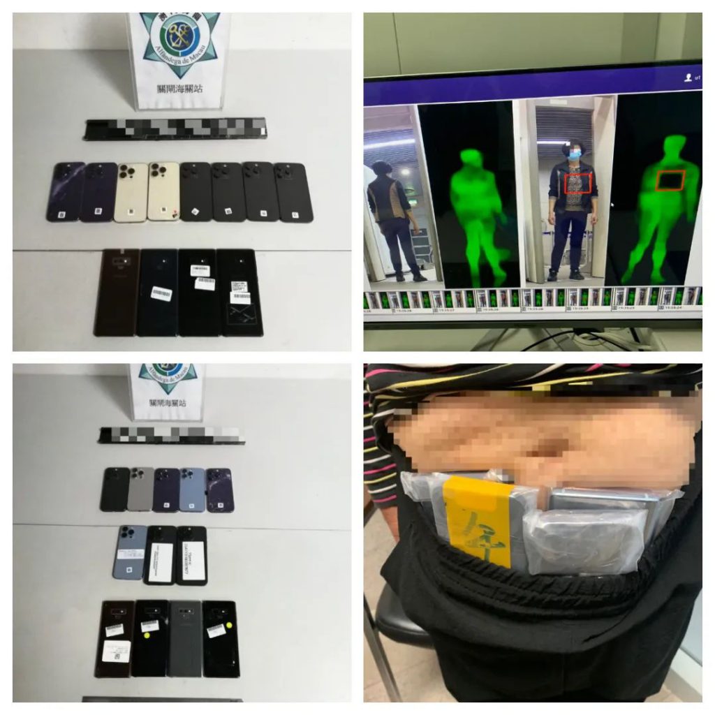 Na tarde do dia 9 de Janeiro, os verificadores alfandegários encontraram um indivíduo do sexo feminino que apresentava movimentos suspeitos na área de inspecção de passageiros de saída do Posto Fronteiriço das Portas do Cerco, suspeitaram que ela transportava itens ilegais escondidos no seu corpo. Após inspecção pelo Sistema de inspecção da segurança por scanner corporal Terahertz, descobriram que a mulher em questão tinha amarrado 12 telemóveis usados, por forma oculta nas pernas, na tentativa de contrabandeá-los para fora de Macau.