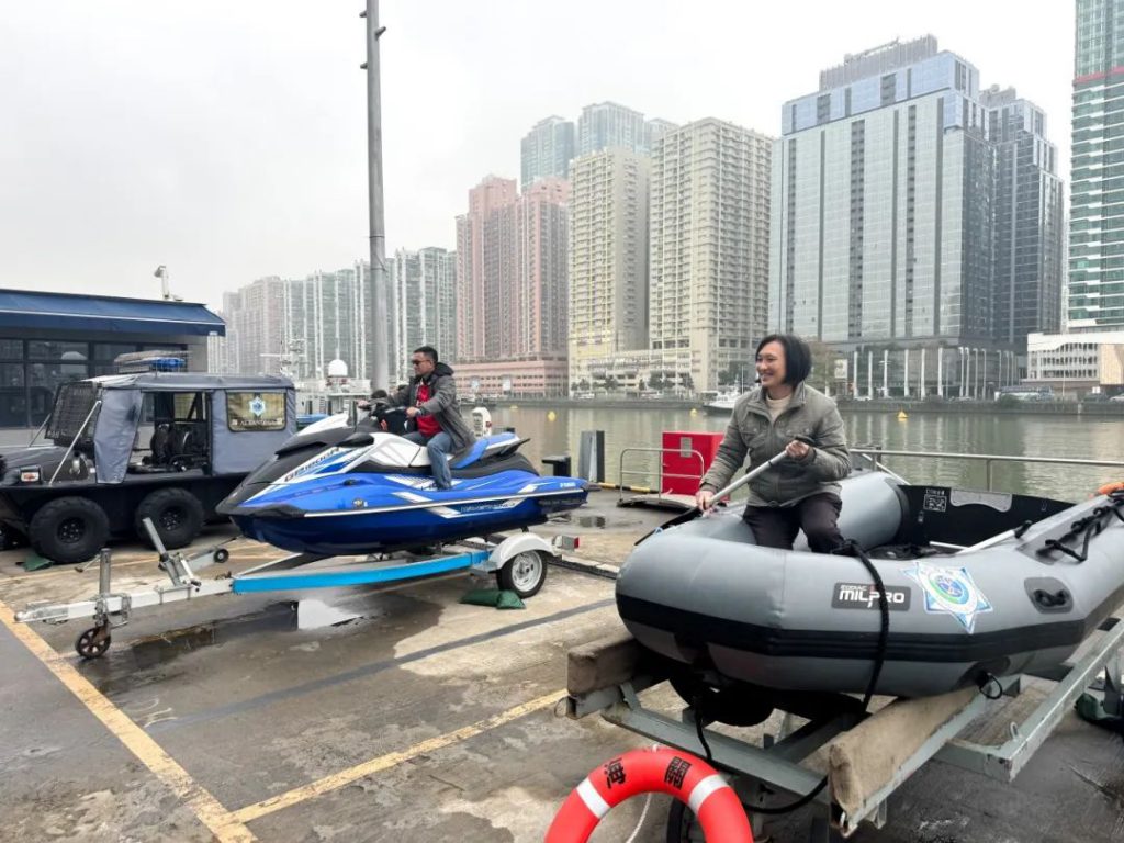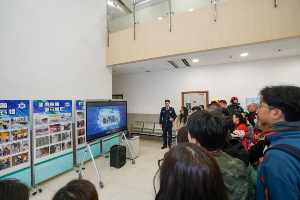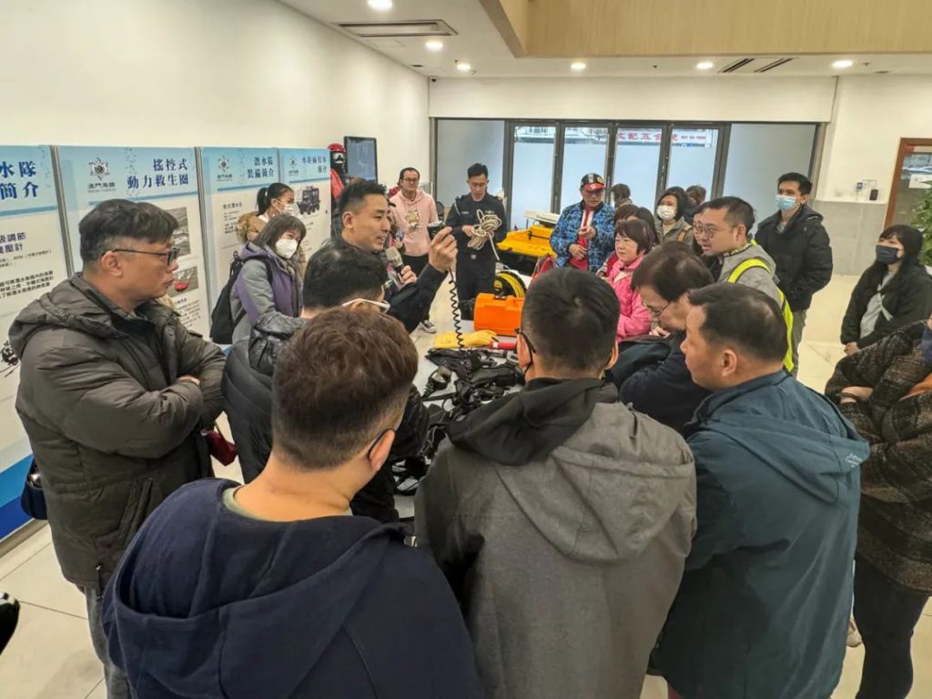 參觀期間,由潛水隊人員講解在海上執勤及救援工作中常用的潛水裝備、通訊設備、水陸兩用車、水上電單車及橡皮艇等設備的操作和應用,同時安排參觀者近距離接觸和親身體驗。