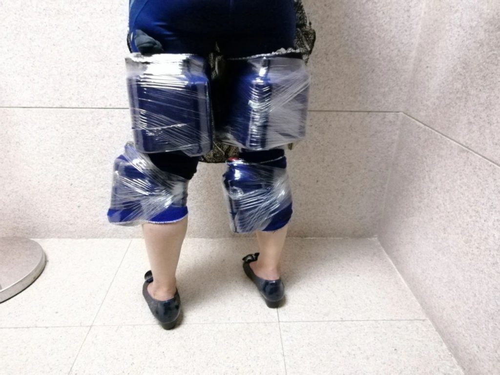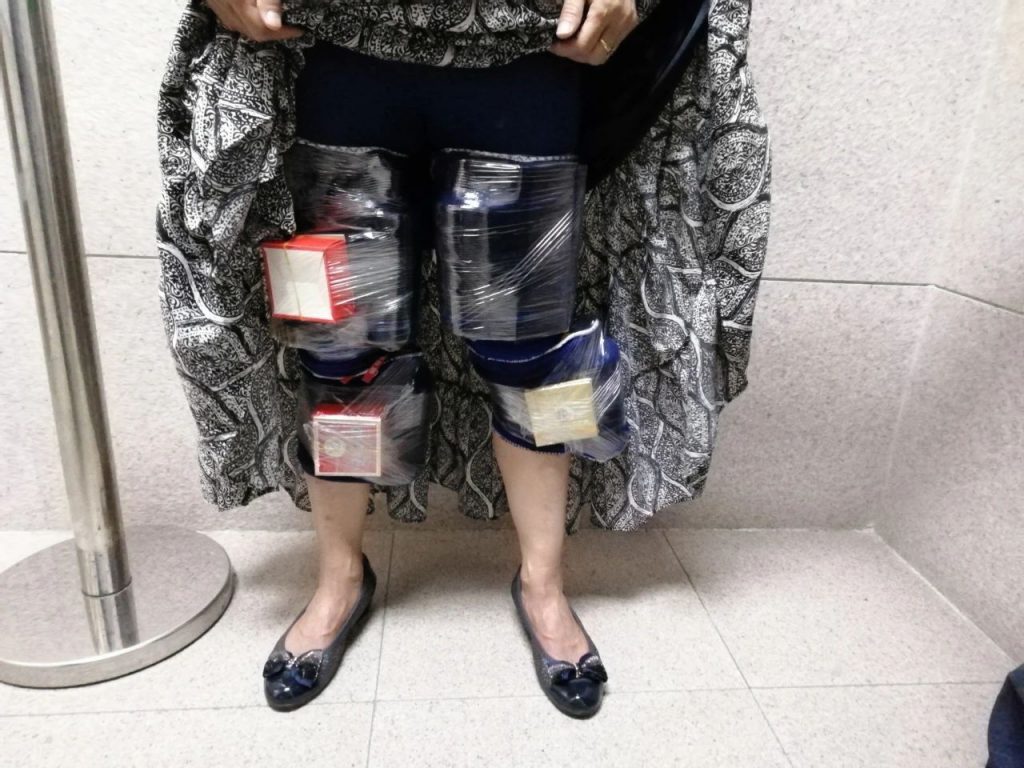 17日下午,海關人員於關閘口岸出境旅客檢查區發現一名通關女子肢體僵硬,步履異常,懷疑其身上藏有可疑物品。經使用太赫茲人體成像安檢系統詳細檢查後,發現該名女子將8支市值逾2萬澳門元中國白酒綁藏於大腿及小腿,試圖偷運出境。