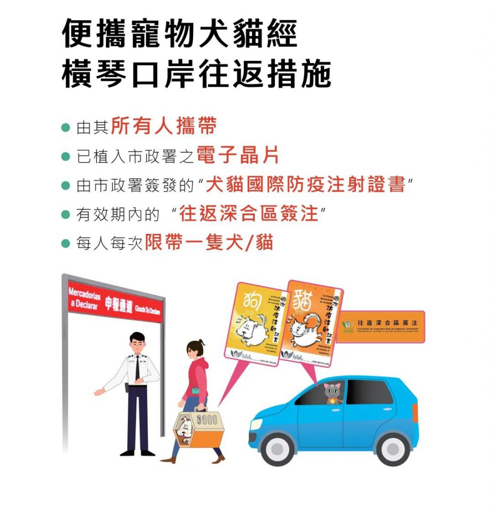 海關提醒,使用隨車人員驗放廳的人士,應攜同個人行李及物品過關。對於“適用人員名單庫”內的本澳寵物犬貓主人,隨車時亦可每次攜帶一隻符合免檢條件的寵物犬貓,使用隨車人員驗放廳通關。詳情請參閱便攜寵物犬貓經橫琴口岸往返澳門措施。