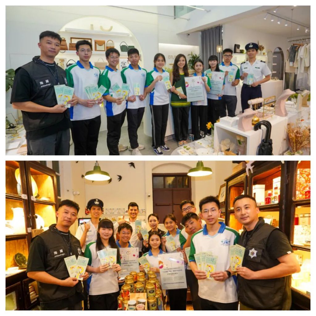 其後,「守正之星」學員與海關人員一同前往附近商戶,向經營人派發宣傳單張,宣講保護知識產權的訊息,並提醒經營人應選擇信譽良好的供應商入貨,留意比對貨品的價格和品質,從採購至零售的經營過程中都必須恪守現行法律,避免購入及販賣侵權產品而被追究相關責任。