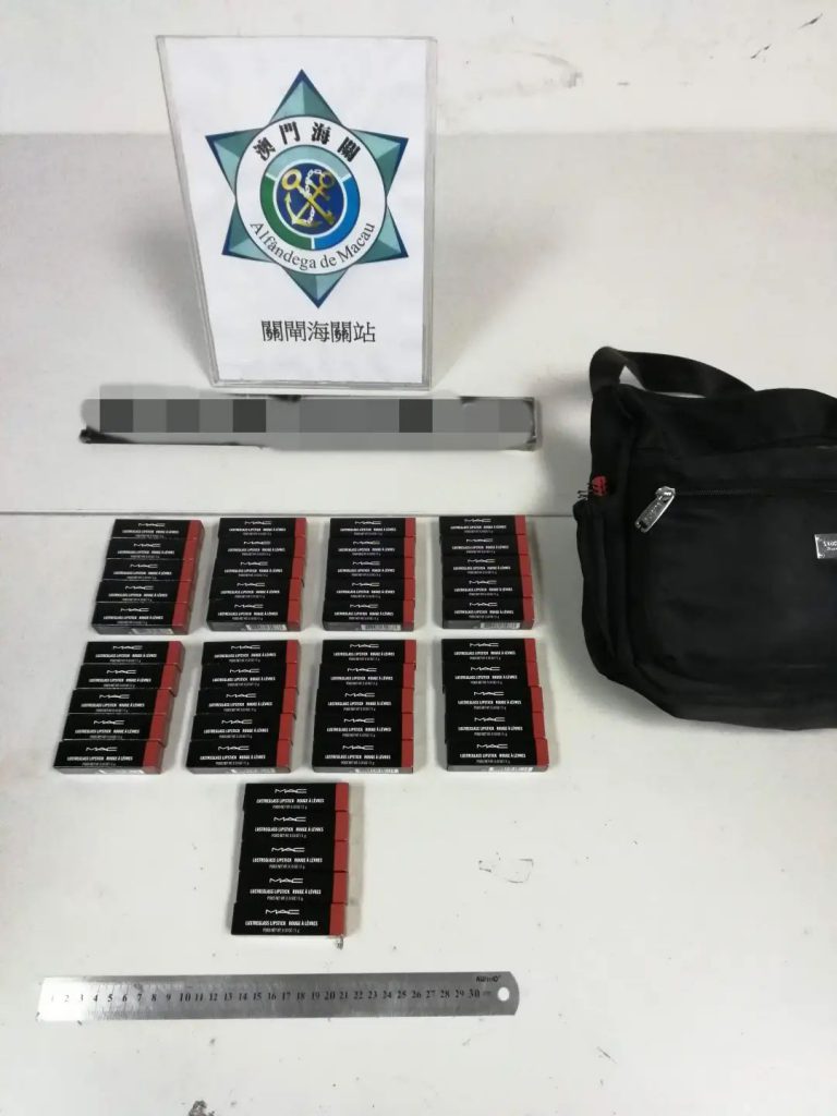 Na tarde do dia 3 de Abril, os verificadores alfandegários encontraram um indivíduo do sexo feminino que apresentava movimentos suspeitos na área de inspecção de passageiros de saída do Posto Fronteiriço das Portas do Cerco, suspeitaram que ela transportava itens ilegais escondidos no seu corpo. Após inspecção detalhada pelos Sistema de inspecção da segurança por scanner corporal Terahertz e Sistema de inspecção por Raio-X, descobriram que a mulher em questão transportava, 45 unidades de produtos cosméticos, por forma oculta na cintura e na mala, na tentativa de contrabandeá-los para fora de Macau, as mercadorias interceptadas não possuiam qualquer documento de declaração alfandegária válido.