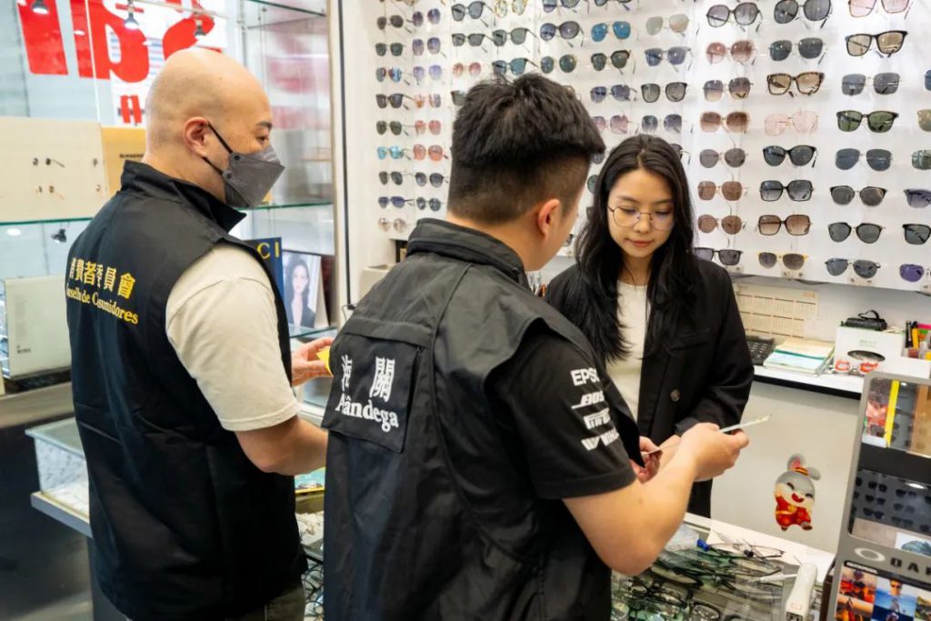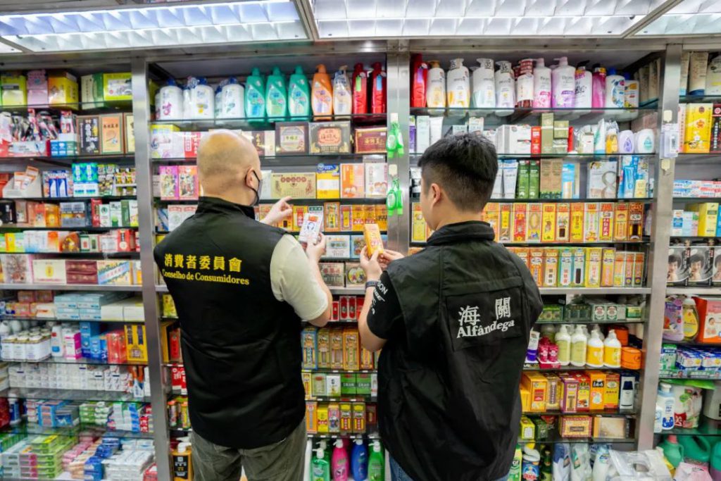 五一假期期間訪澳旅客增加,為保障消費者權益,維護澳門作為旅遊城市的良好形象,澳門海關連日聯同經濟及科技發展局、藥物監督管理局及消費者委員會開展聯合巡查及宣傳工作,以預防及遏止侵權行為。