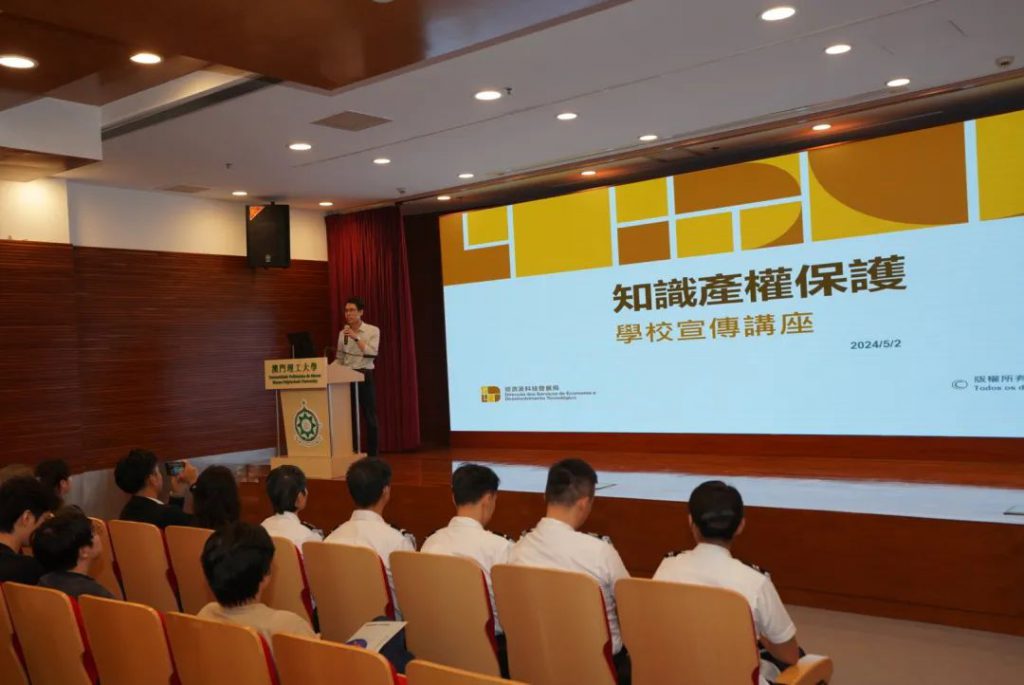 Em virtude de divulgar a importância da defesa dos direitos de propriedade intelectual, bem como promover a consciência do cumprimento das leis junto dos jovens. Em 30 de Abril, os Serviços de Alfândega, a Direcção dos Serviços de Economia e Desenvolvimento Tecnológico e o Centro de Negócios dos Direitos de Propriedade Intelectual Internacional (Hengqin) realizaram na Universidade Politécnica de Macau uma palestra sobre a protecção dos direitos de propriedade intelectual, explicaram as leis relevantes e as formas para evitar violar os direitos de propriedade intelectual, de modo a trabalhar com a geração mais jovem para proteger os direitos de propriedade intelectual. Cerca de 100 professores e alunos participaram na actividade.