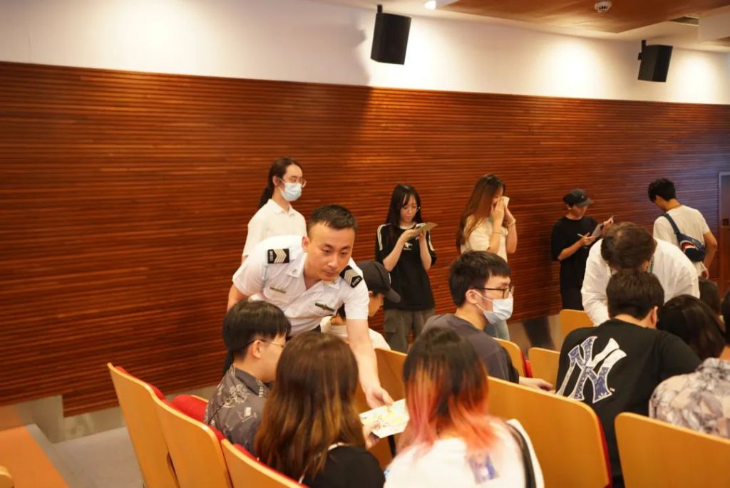 Durante a palestra, o pessoal dos SA também distribuíu folhetos aos alunos para explicar as leis relacionadas com a protecção dos direitos de propriedade intelectual em Macau e forneceram aos alunos canais de comunicação com os SA para trabalharem em conjunto na protecção dos direitos de propriedade intelectual.
