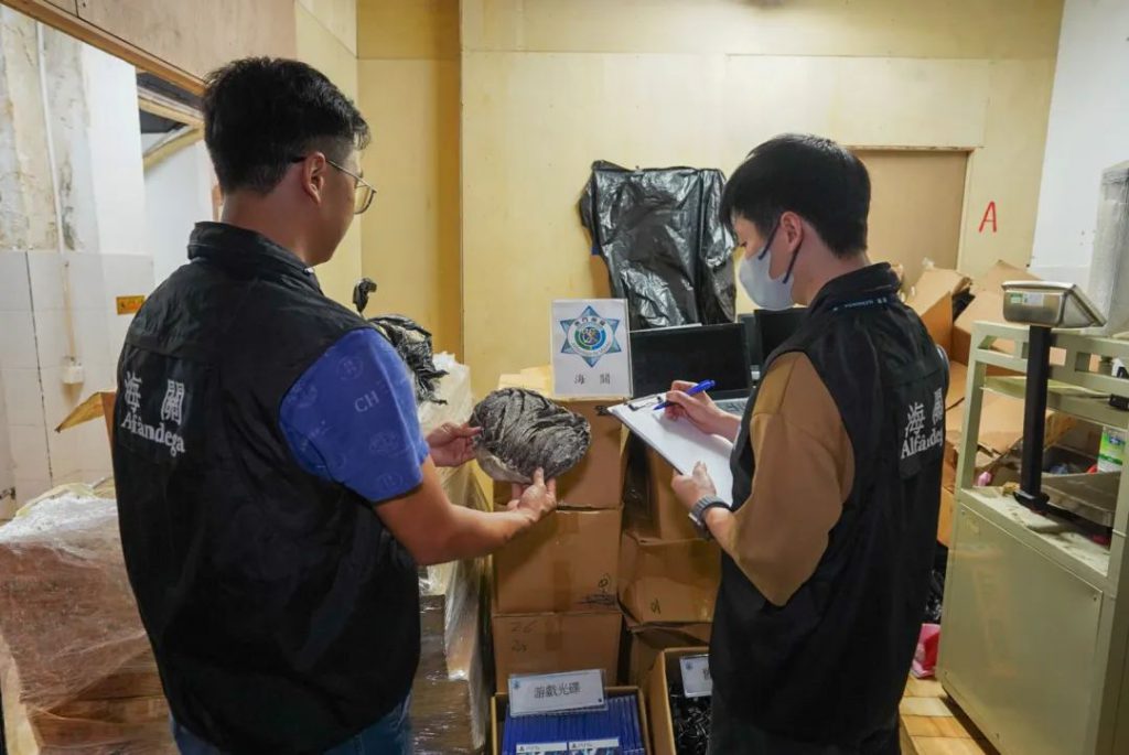 Com a recolha de informações, os SA realizaram a vigilância em relação a um ponto suspeito de distribuição para os praticantes de comércio paralelo. Na noite do dia 29, o pessoal alfandegário interceptou, no Posto Fronteiriço das Portas do Cerco, 3 indivíduos de saída, encontrando nos seus corpos 4 pacotes de estômago de bovino congelado, após interrogatório, foi confirmado que os praticantes de comércio paralelo estavam a transportar a mercadoria de uma loja num centro comercial da zona norte para fora de Macau com a respectiva recompensa pecuniária. Visto que era o momento ideal para a acção, o pessoal alfandegário dirigiu-se logo à loja alvo, foram interceptados uma responsável no local e 465 kgs de estômago de bovino congelado e 300 computadores portáteis e 400 respectivas peças usados e ainda 120 CDs de videojogos, com um valor total de cerca de 280 mil patacas, os artigos em questão não possuíam quaisquer documentos de importação e exportação válidos.