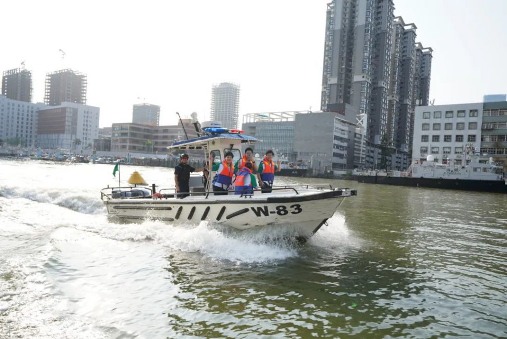 Finalmente, sob a liderança do pessoal alfandegário, os visitantes embarcaram na lancha de fiscalização para conhecerem a aplicação dos equipamentos tecnológicos instalados na embarcação no trabalho quotidiano, e conhecerem ainda melhor, através da experiência pessoal no trabalho de policiamento, a situação concreta da área marítima de jurisdição de Macau.
