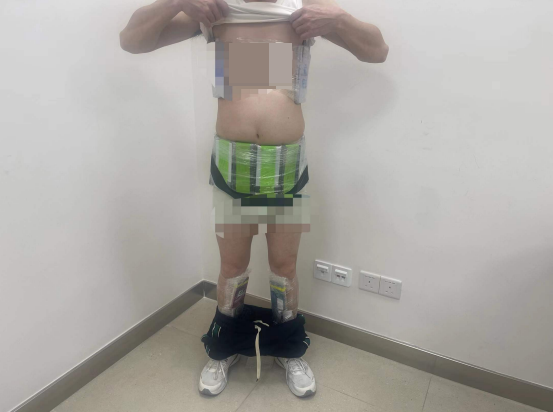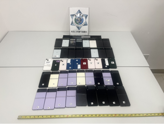 於9日清晨,關員在青茂口岸出境旅客通道發現一名通關男子形跡可疑,懷疑其藏有可疑物品,遂對其作出抽查指示,該名男子見狀突然轉身往出境相反方向逃跑,關員隨即進行追截,最終成功將其截獲。經使用金屬探測門及x射線檢查系統作詳細檢查後,發現該名男子將44部舊手提電話綁藏於腰間及雙腿,試圖偷運出境,查獲貨物均不具備有效的申報文件。