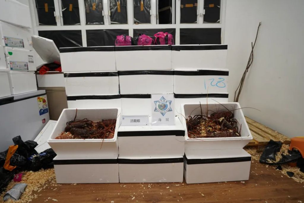 Os SA atendem, estreitamente, à situação e tendência de desenvolvimento da actividade ligada com o comércio paralelo, com base na análise e investigação de acompanhamento de casos recentes de lagostas contrabandeadas e interceptadas no Posto Fronteiriço das Portas do Cerco, posicionaram-se pontos de abastecimento suspeitos na cidade. No dia 5 deste mês, os SA desmantelaram dois pontos de distribuição para os praticantes de comércio paralelo na zona norte, foram interceptados na acção 390 kg de lagostas vivas, 4 indivíduos foram detidos por infracção e enviados para uma investigação mais profunda.