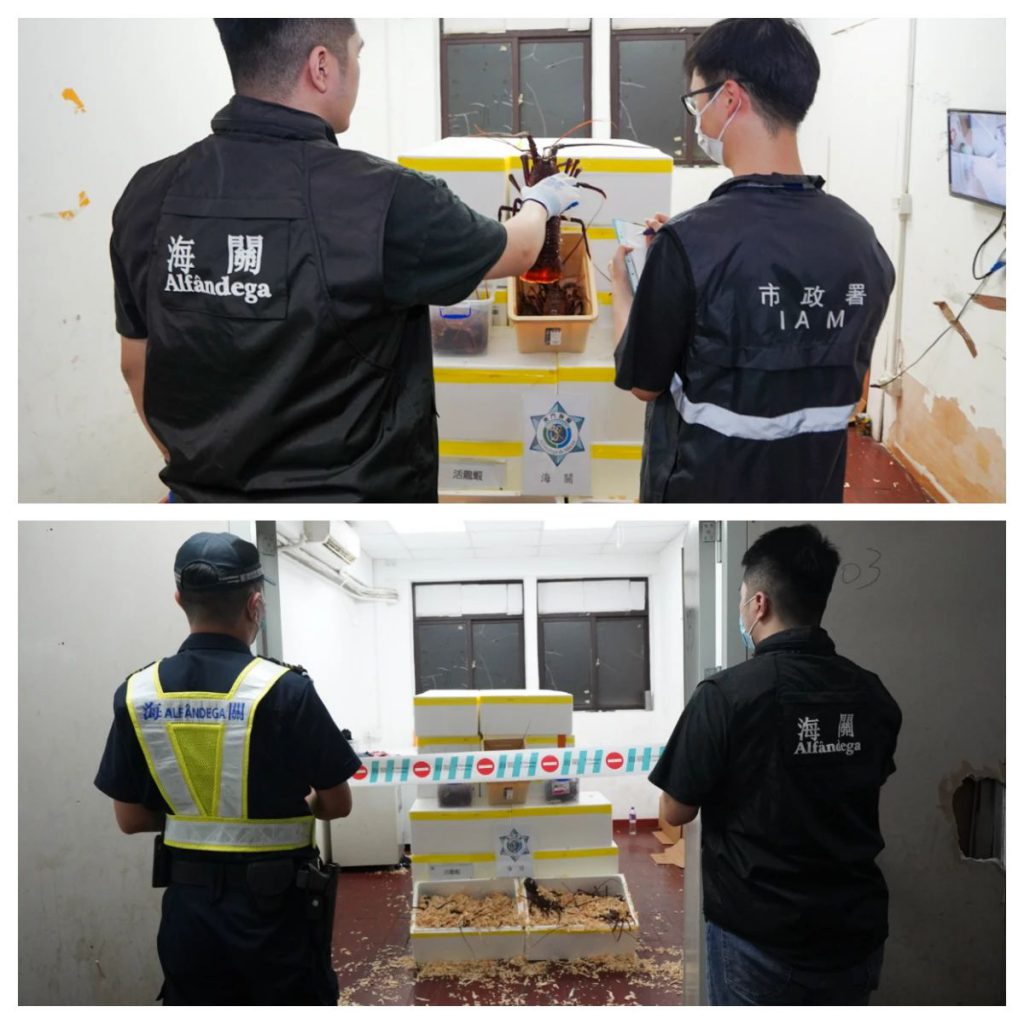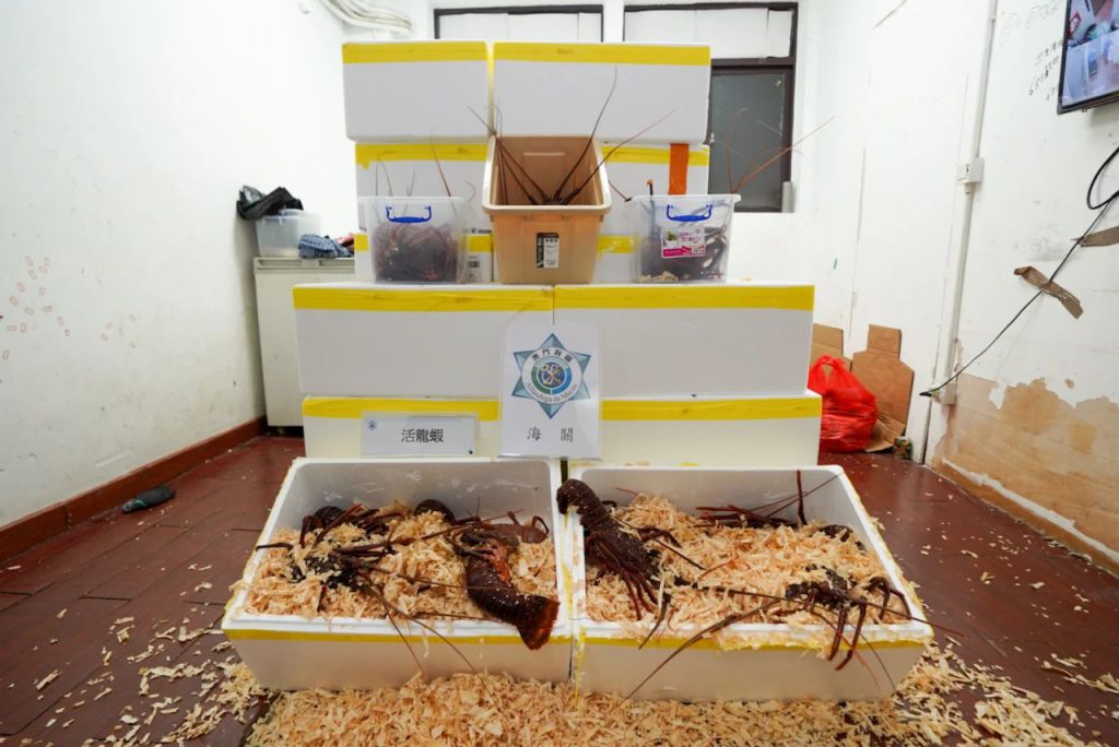 海关持续监察水客活动的发展态势,根据近日截获偷运龙虾个案分析及追踪调查,锁定市内的怀疑供货点。于2日下午,海关人员巡查期间,发现北区某工厦单位有从事水客活动迹象,实时对有关单位采取行动并查获1名男性现场负责人,现场检获活龙虾480公斤,货物市值约38万澳门元。